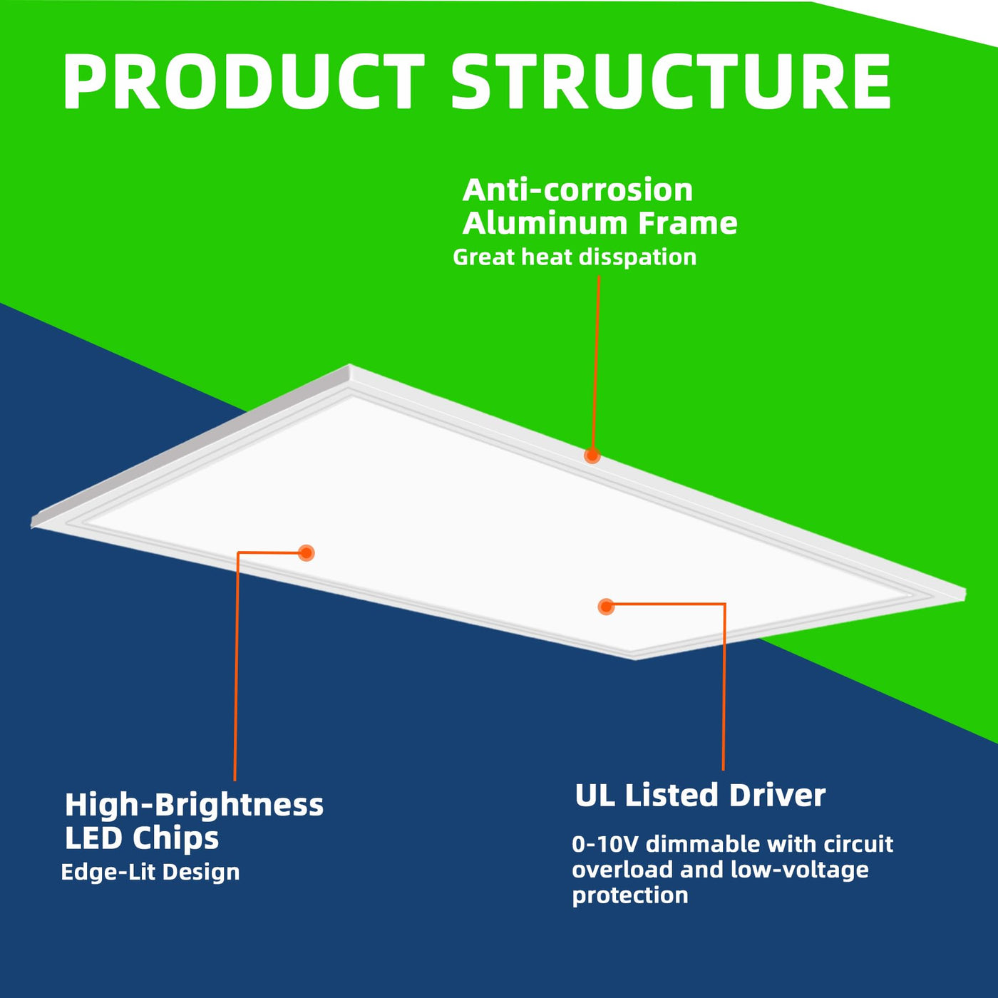 Q: Is the 2x4 LED panel light dimmable?A: Yes, the 2x4 LED panel light features 0-10V dimming capability, allowing you to adjust the brightness from 10% to 100%, providing flexibility for various lighting environments.