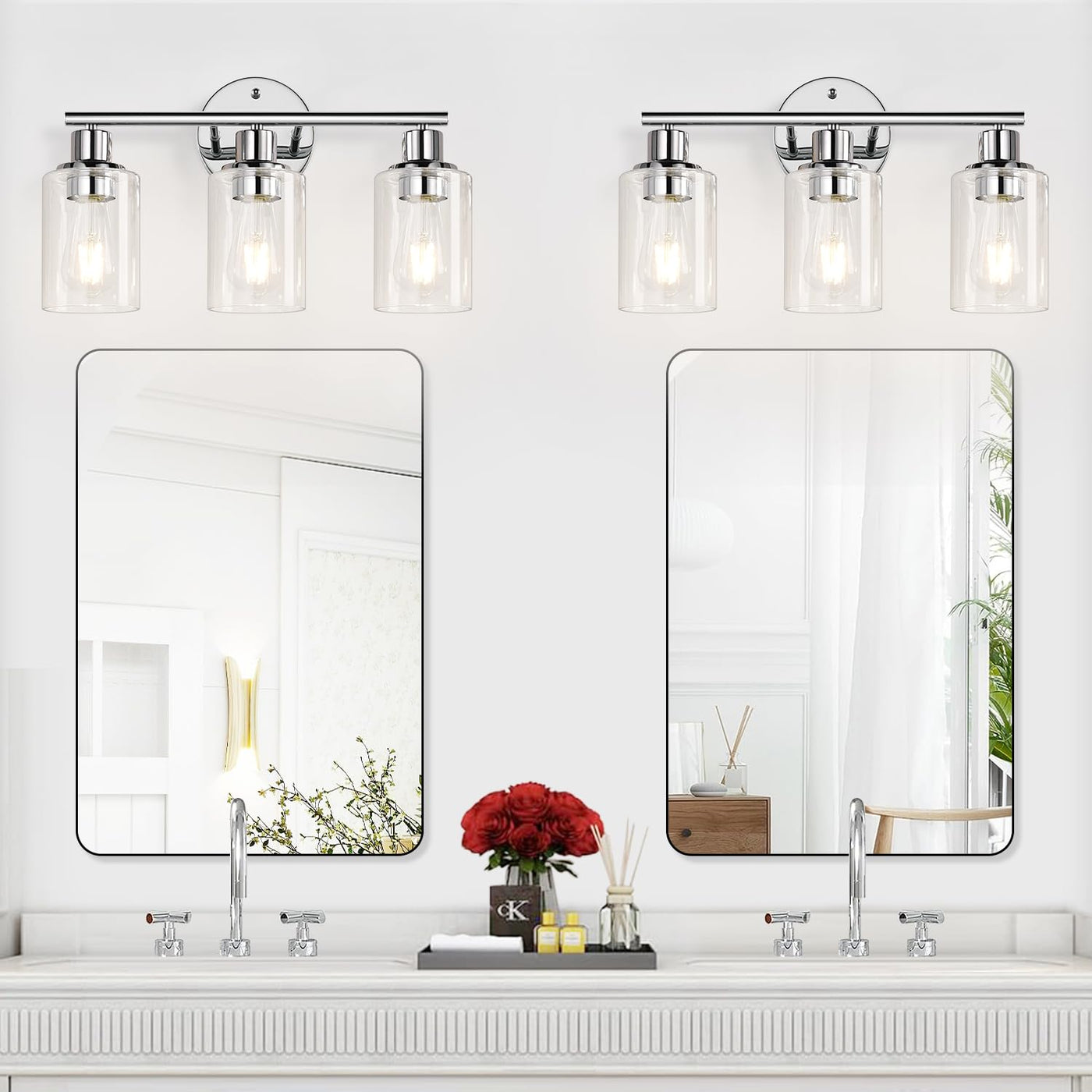 3-Light Bathroom Light Fixtures, Chrome Bathroom Wall Light With Clear Glass Shade, Bathroom Wall Lamp For Mirror Kitchen Living