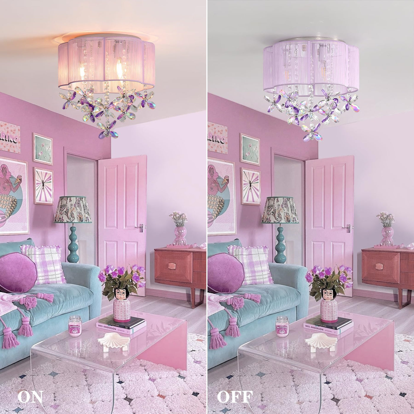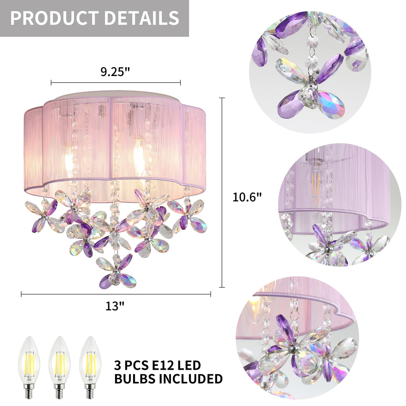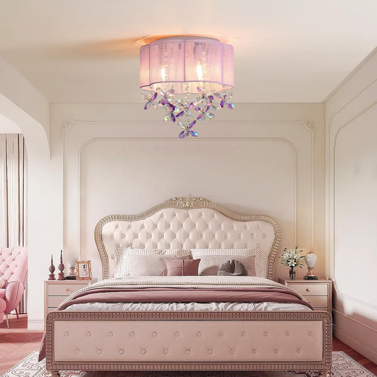 3 Light Bedroom Chandelier Ceiling Light Pink Lamp 13'' Small Crystal Mini Chandelier Flush Mount Ceiling Light With Handmade Fl