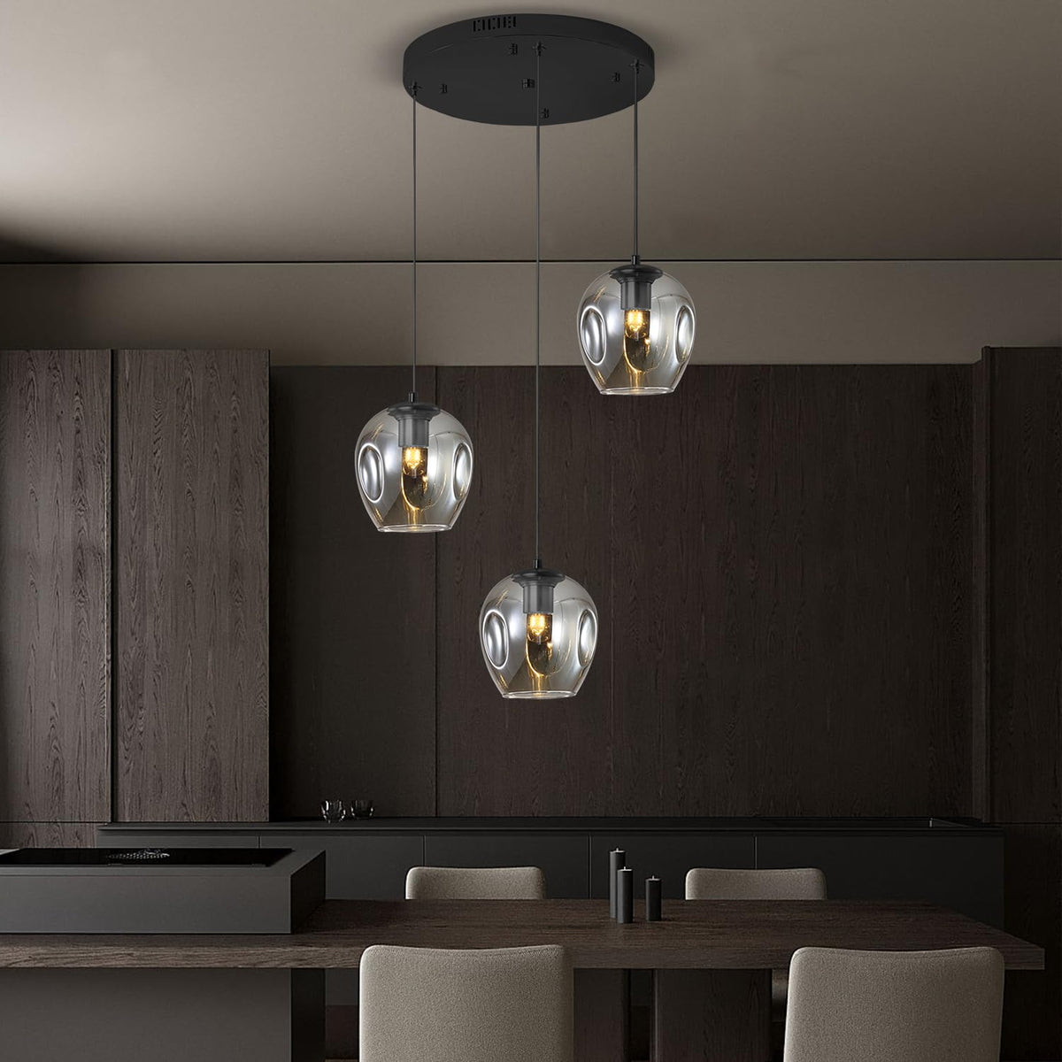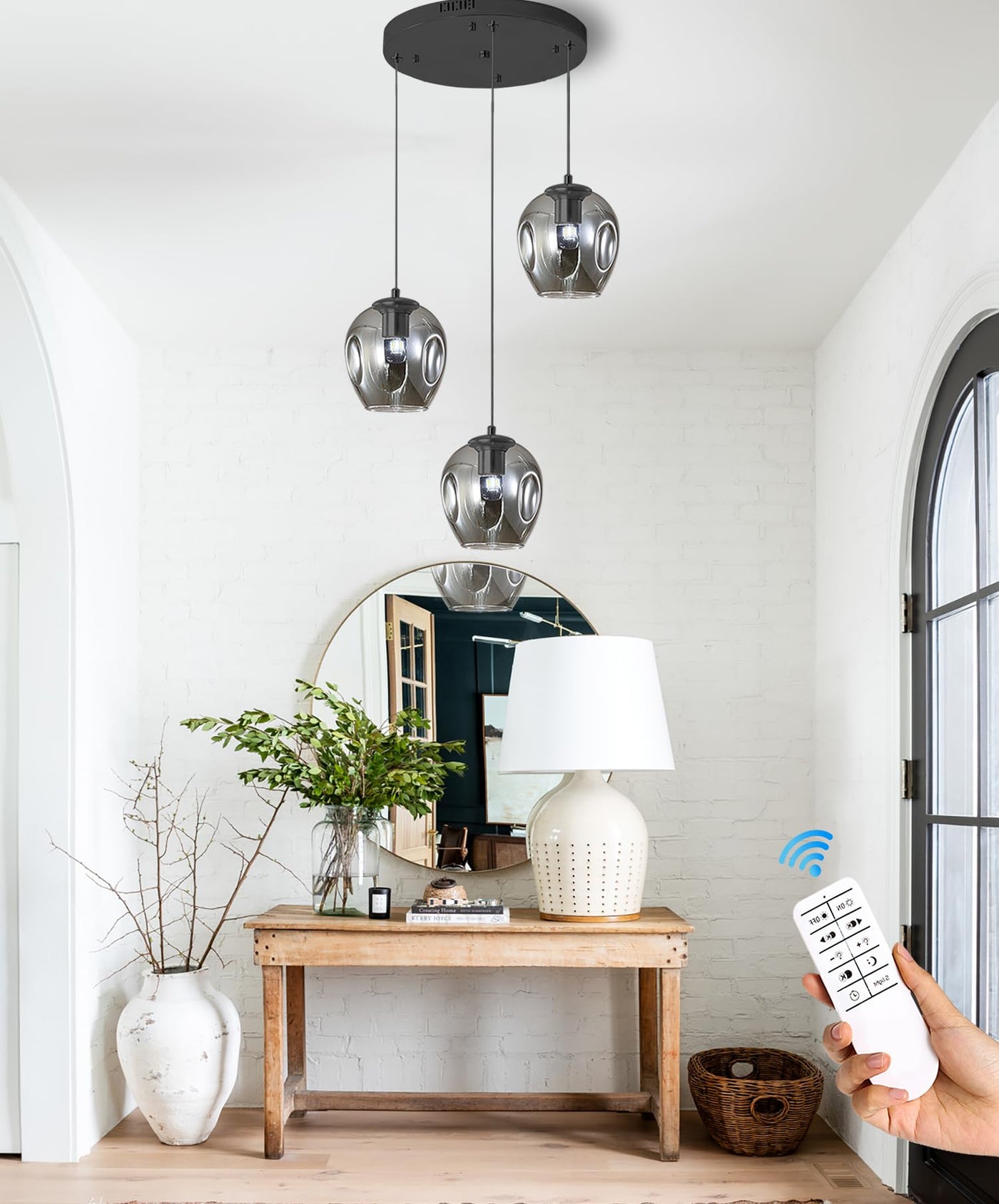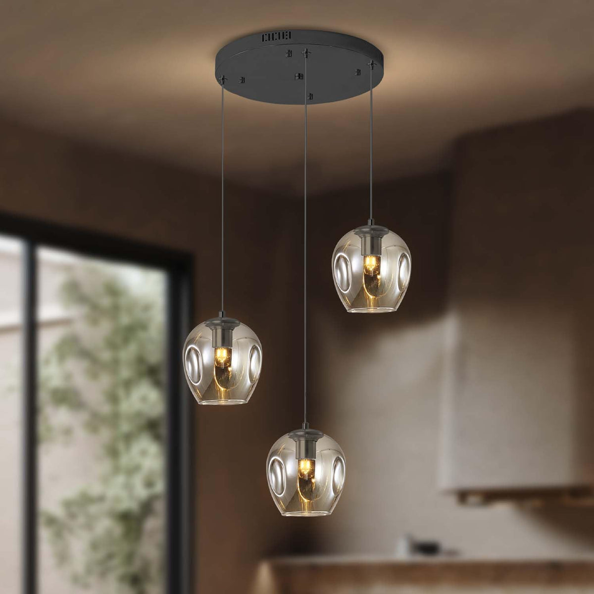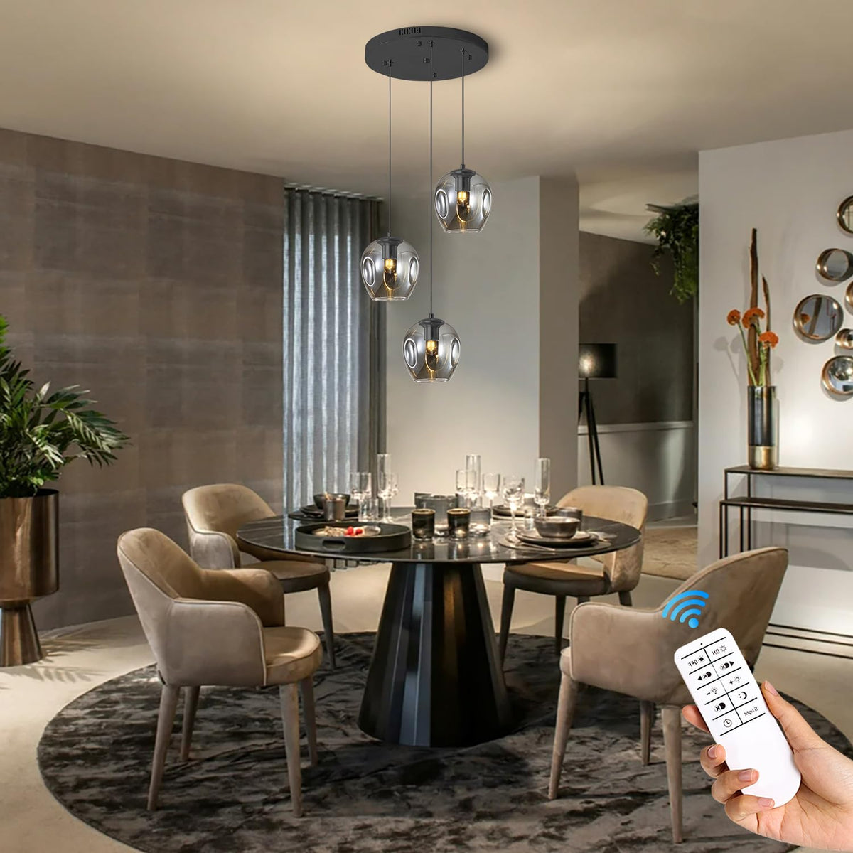 3-Light Black Chandelier with LED Bulbs & Smoke Gray Glass Shade Ceiling Light Pendant Light for Kitchen Island, Dining Room, Living Room, Entry Hallway