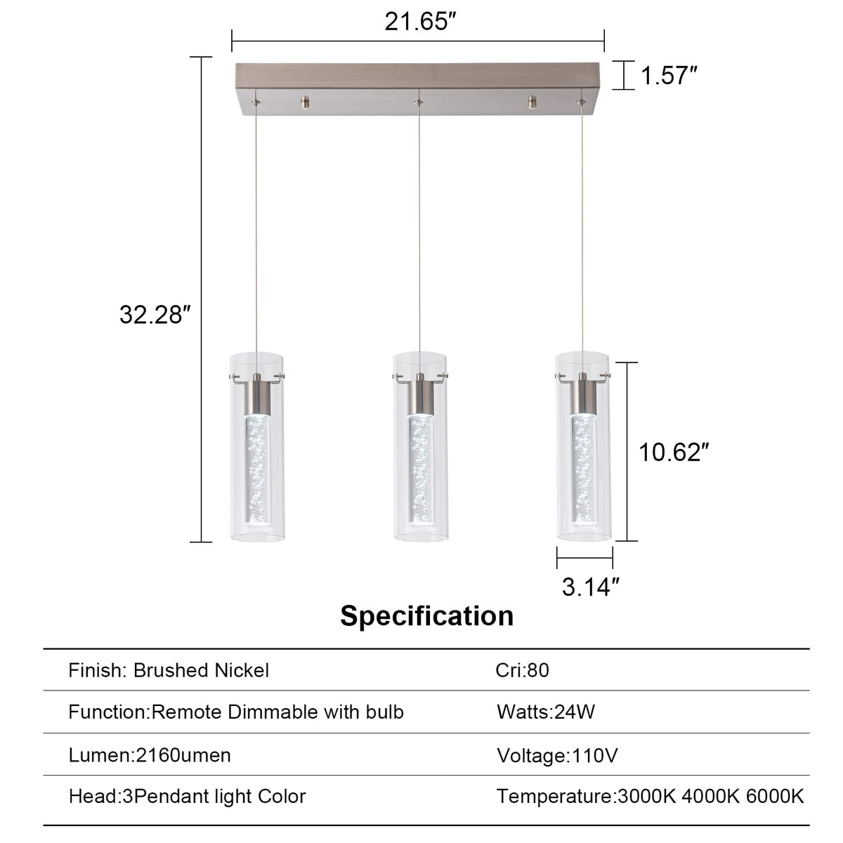 Q: How do I adjust the brightness and color temperature of the pendant light?A: You can easily control the brightness levels (10%-100%) and switch between warm white (3000K) and cool daylight (6000K) using the included remote control.