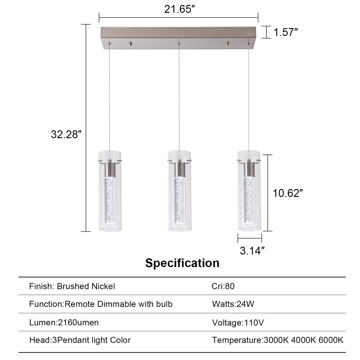 3 Light Kitchen Pendant Lighting Over Island, Modern Pendant Light With Remote Dimmable Three Color, Pendant Lights For Kitchen