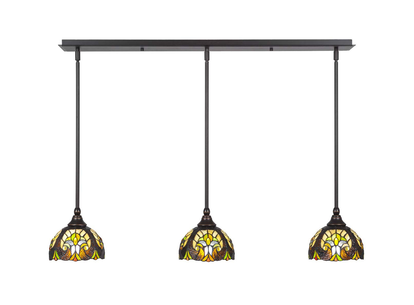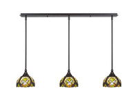 36-DG-9945 3 Light Linear Pendalier With Hang Straight Swivels Shown In Dark Granite Finish With 7" Ivory Cypress Art Glass. Rated for: Dry location. Light Bulb Data: 3 Medium 100 watt. Bulb included: No.
