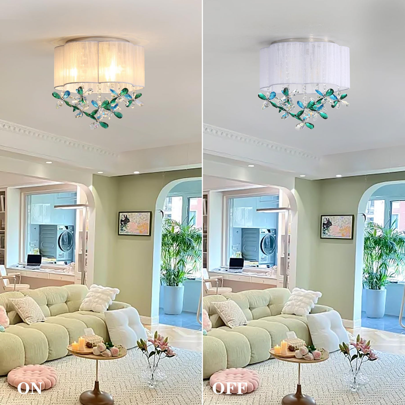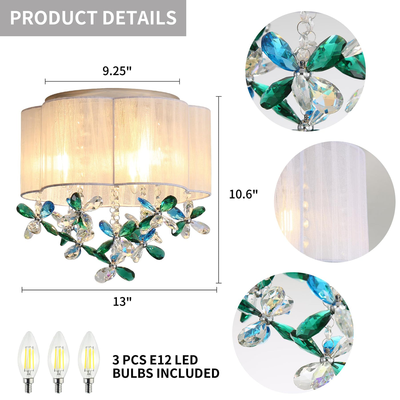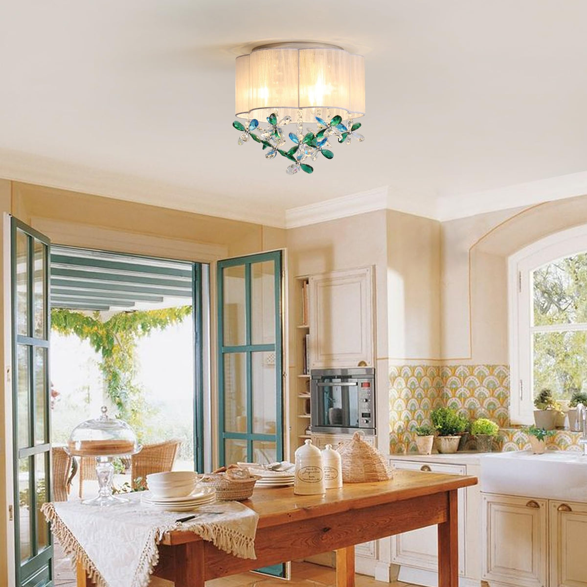 3 Light Mini Chandelier Bedroom Ceiling Light 13'' Small Crystal Chandelier Farmhouse Flush Mount Light With Handmade Flower Lam