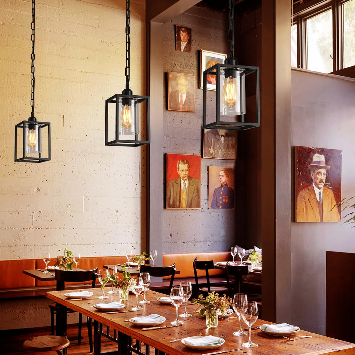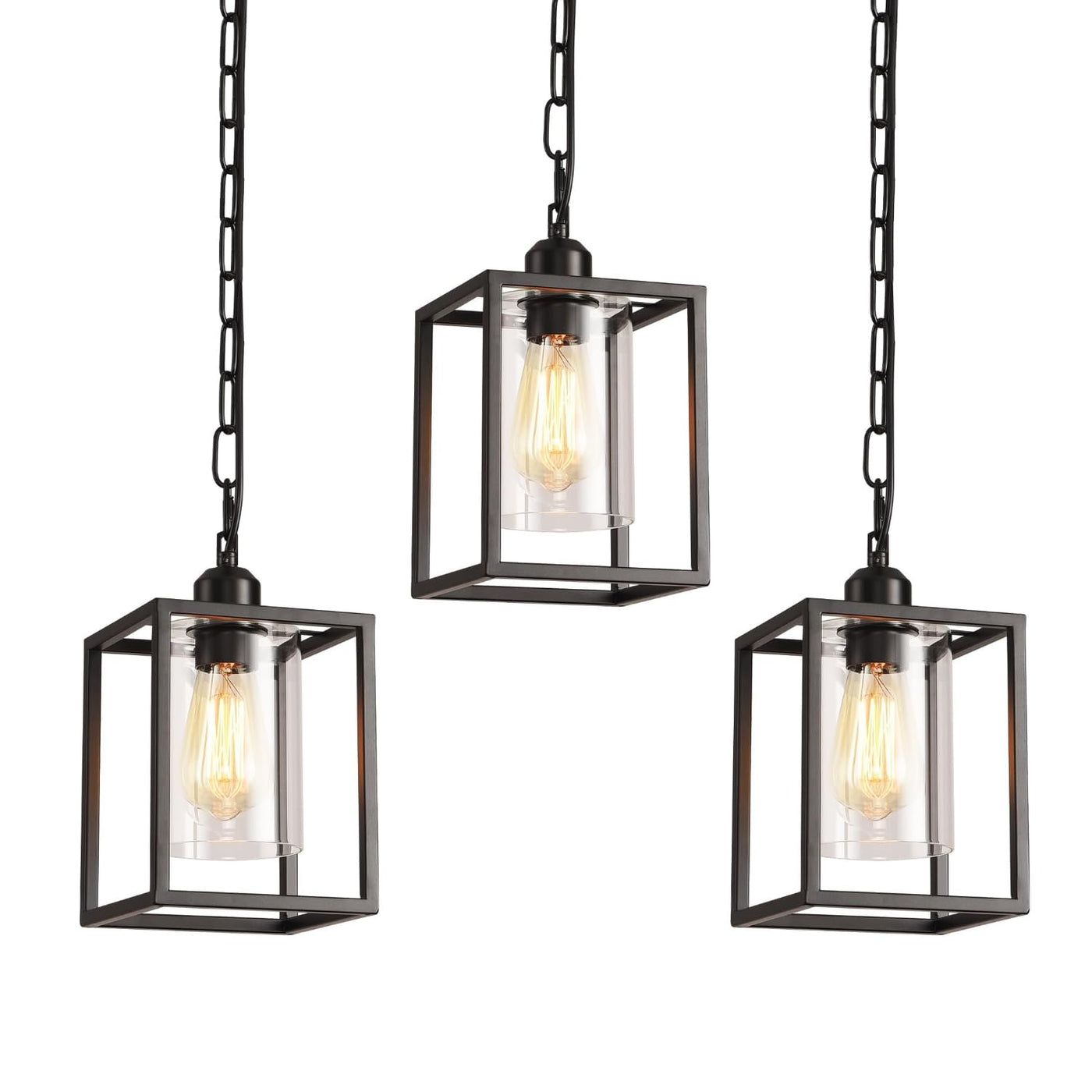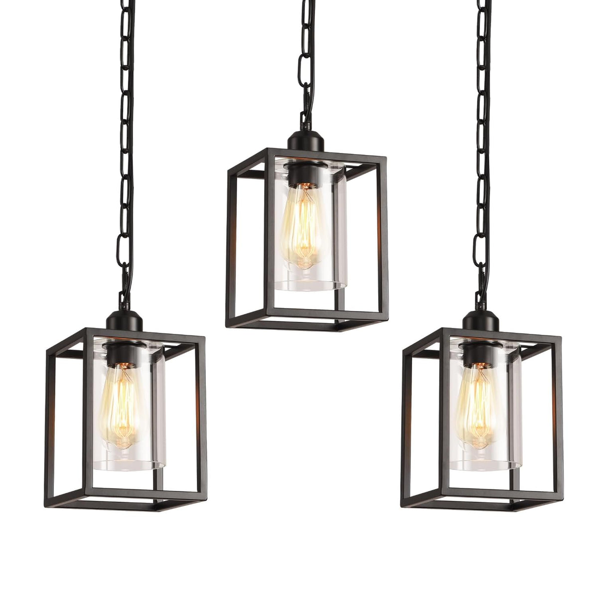 3 Pack Farmhouse Pendant Light Black Metal Frame Hanging Light Fixture With Clear Glass Shade Adjustable Chains Industrial Mini Pendant Lighting For Kitchen Island Entryway Porch Foyer