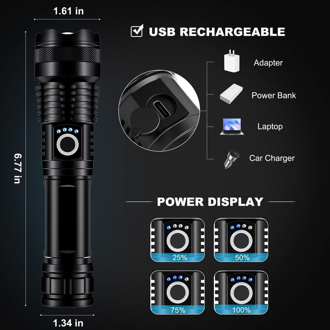Flashlight High Lumens Rechargeable, Handheld Flashlights for Emergencies Camping