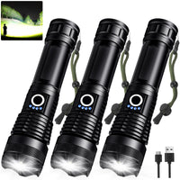 3 Pack Rechargeable Led Flashlights High Lumens, 990,000Lm Super Bright Flashlight, Adjustable 5 Modes Powerful Flash Light With