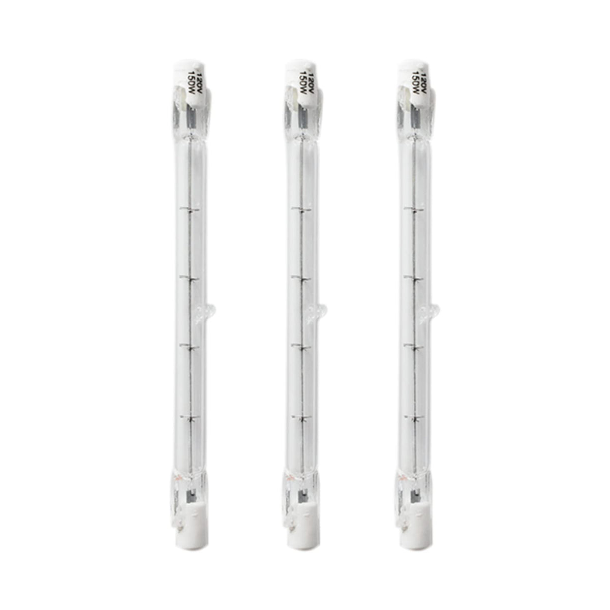 T3 Base Double Ended J type Halogen 120V 150W Light Bulb Specifications: - Base: T3 Base - Voltage: 120 Volts - Wattage: 150 Watts - Dimension: See picture - 3pcs of the set - Long Life - It is one of the most common halogen bulb that fits many different lights - Versatile Usage: Applicable to Homes, Offices, Restaurants, Stores - High Brightness & Energy Efficient - Replacement halogen light bulbs for many uses