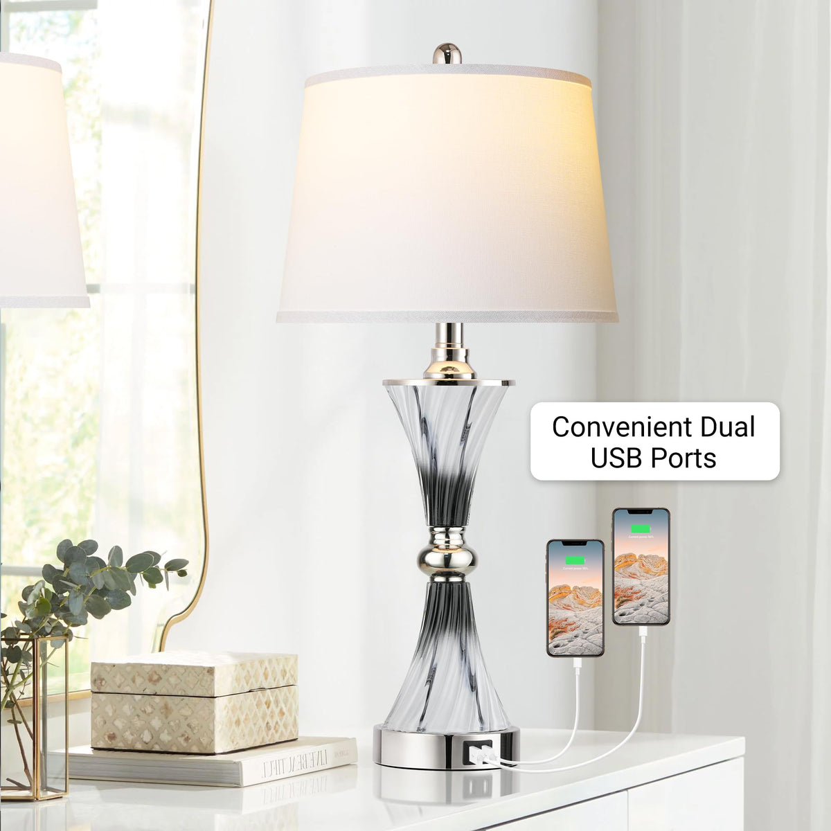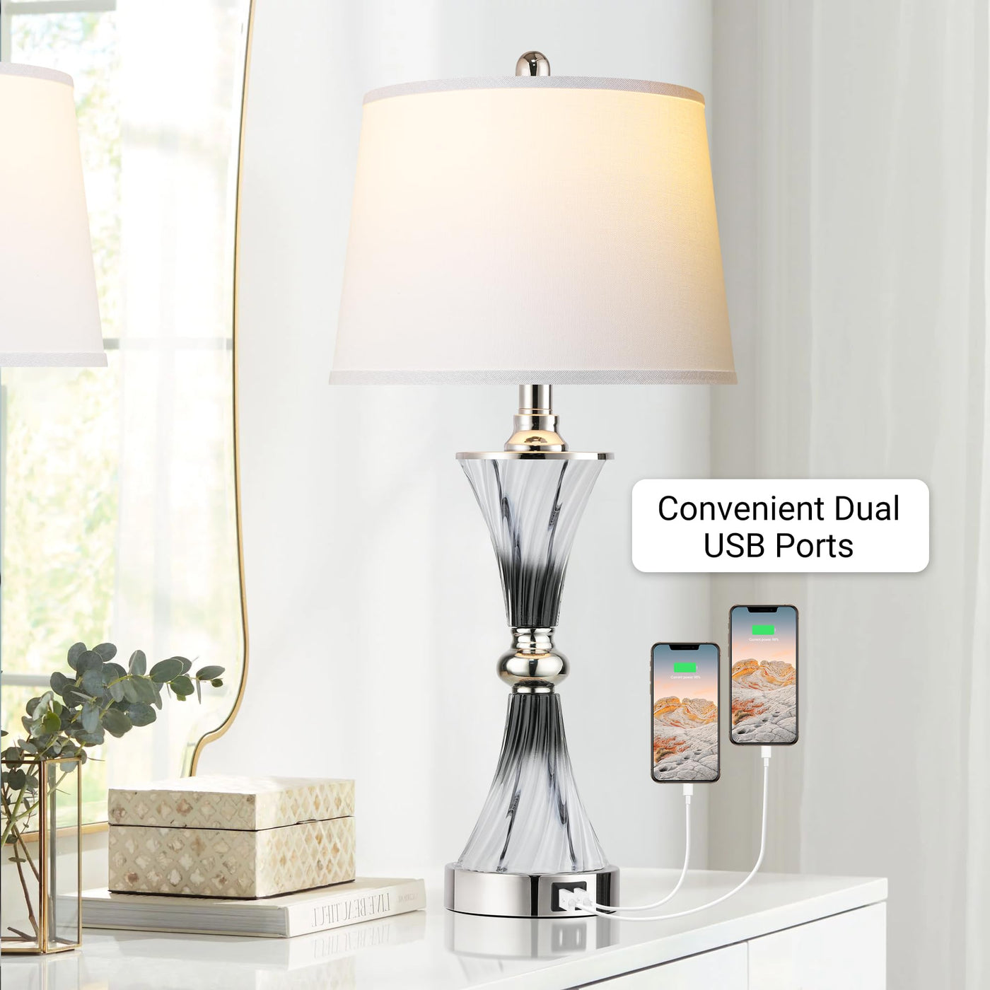 3-Way Dimmable Touch Glass Bedside Table Lamps For Bedroom Set Of 2 With 2 Usb Ports,Dark Grey And White Living Room Lamps For E