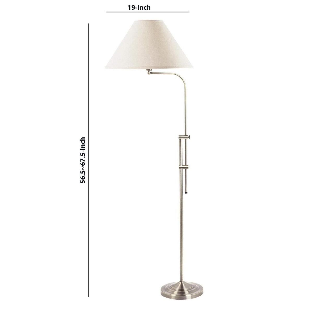Enlighten your home with the rays of hope and positivity by the inclusion of this amazing floor lamp. It features a metal constructed tubular body with an adjustable height mechanism, incorporating a fabric shade and a 3 way switch for optimal light intensity control. It is supported by a pedestal base, providing stability and durability.