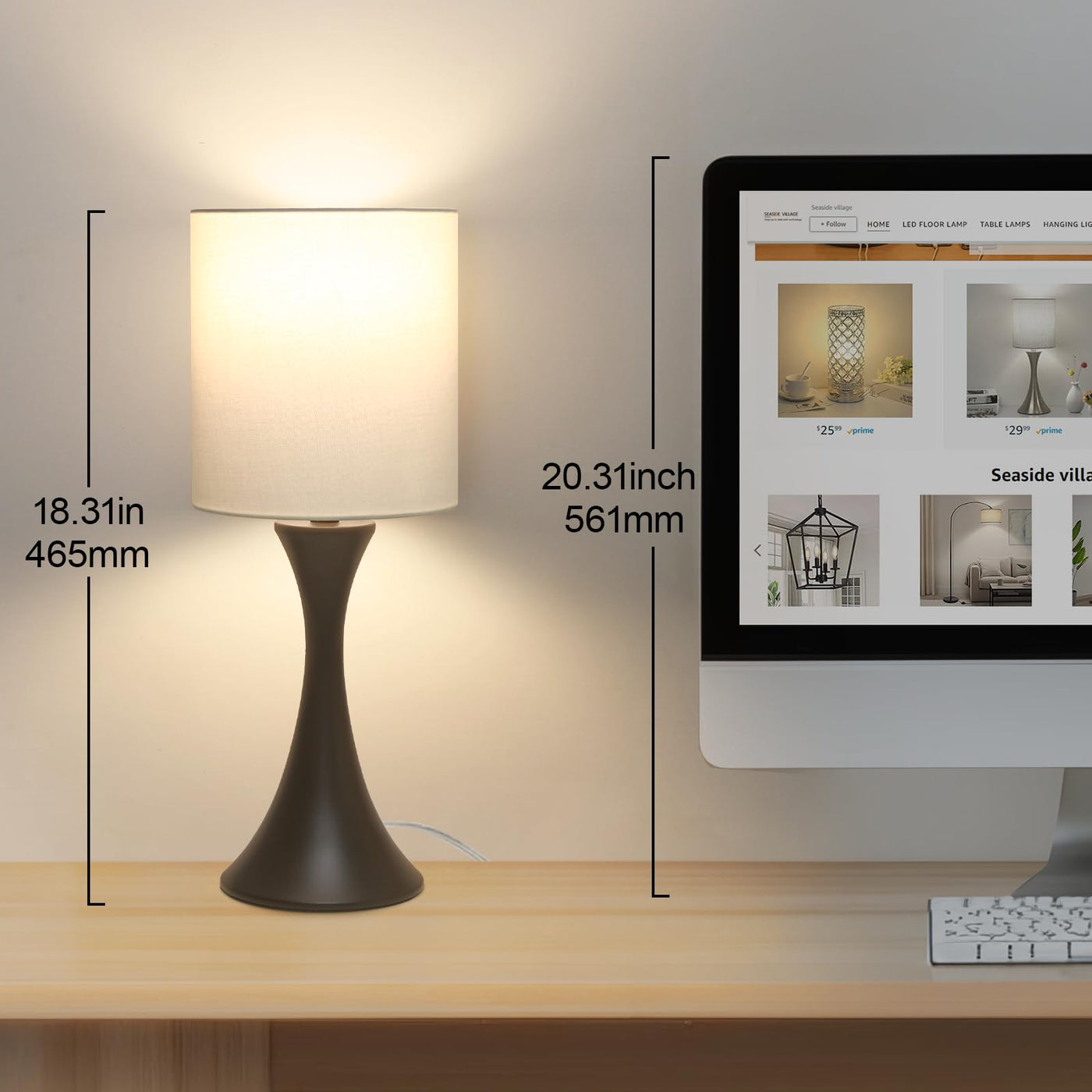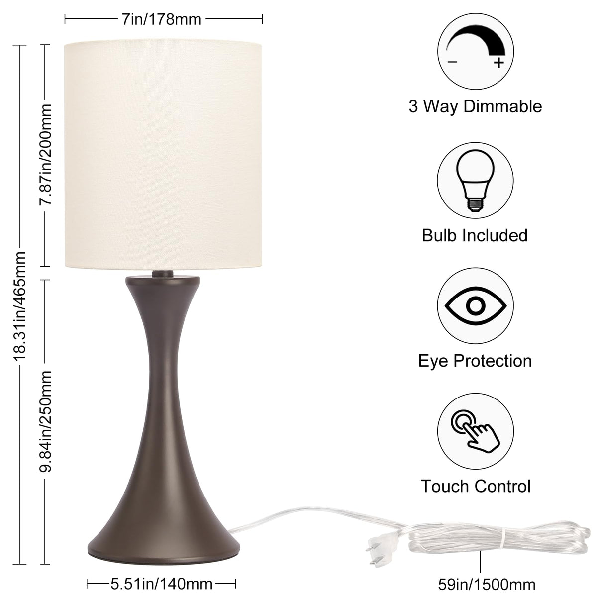Q: What are the dimensions of the 3 Way Touch Control Table Lamp?A: The 3 Way Touch Control Table Lamp has a height of 18.25 inches and a base diameter of 5.5 inches, making it a compact choice suitable for bedside tables and desks.