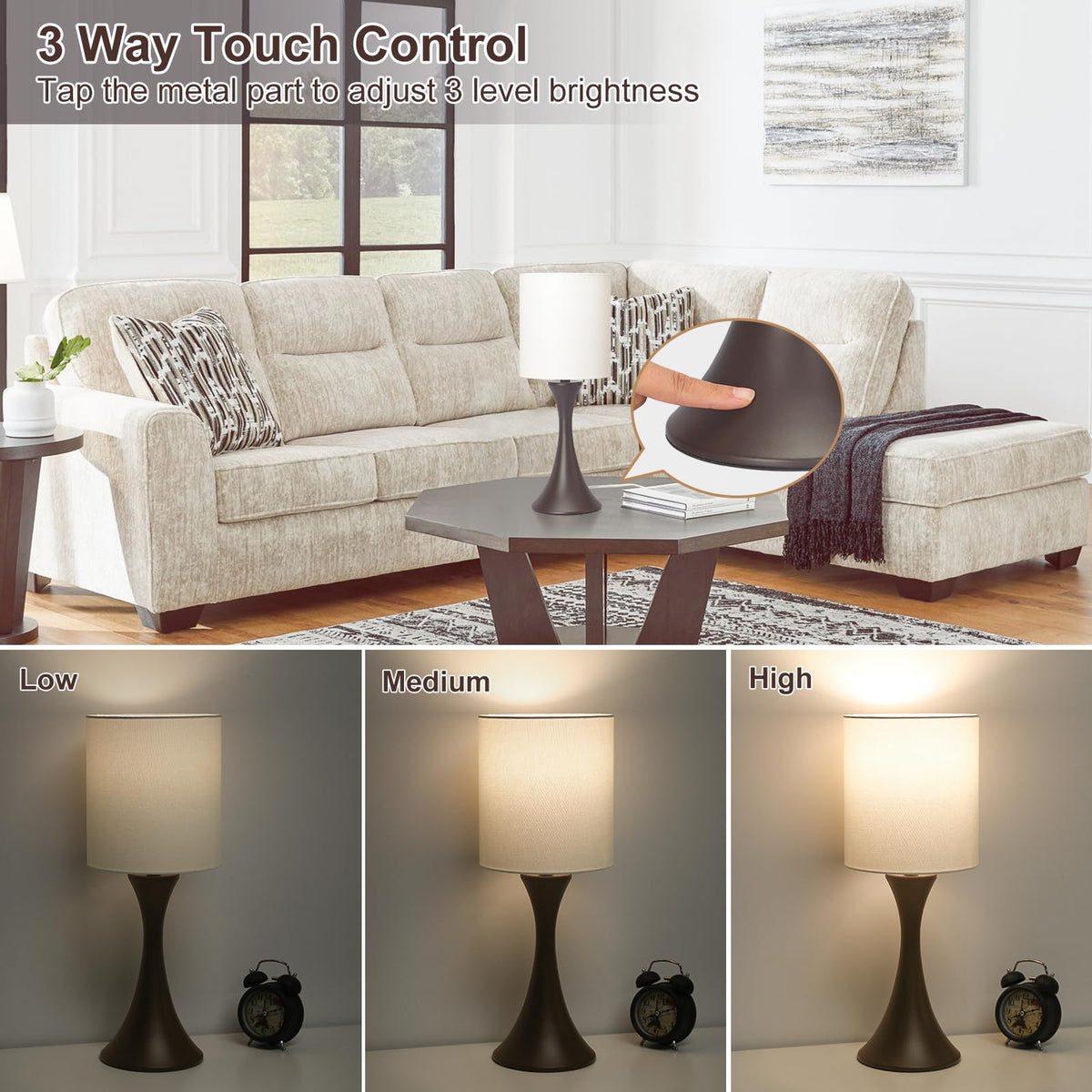 3 Way Touch Control Table Lamp, Modern Bedside Lamp Dimmable Nightstand Lamp With Beige Shade And Dark Brown Base, Small Desk La
