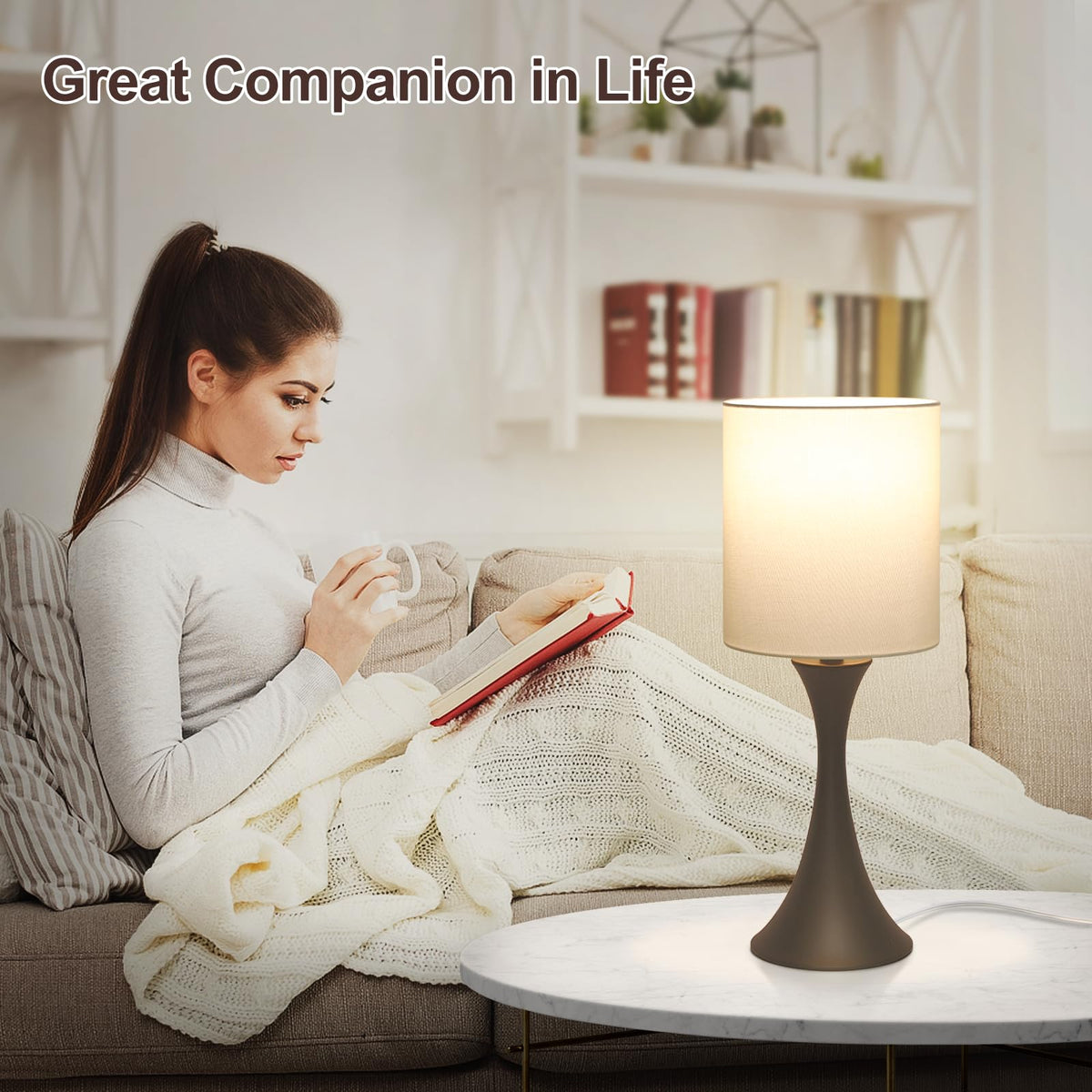 Q: How does the touch control feature work on this lamp?A: The lamp features a 3-way dimmable touch control, allowing you to easily change the light brightness by simply tapping the base. You can choose between low, medium, and high settings for your desired lighting ambiance.