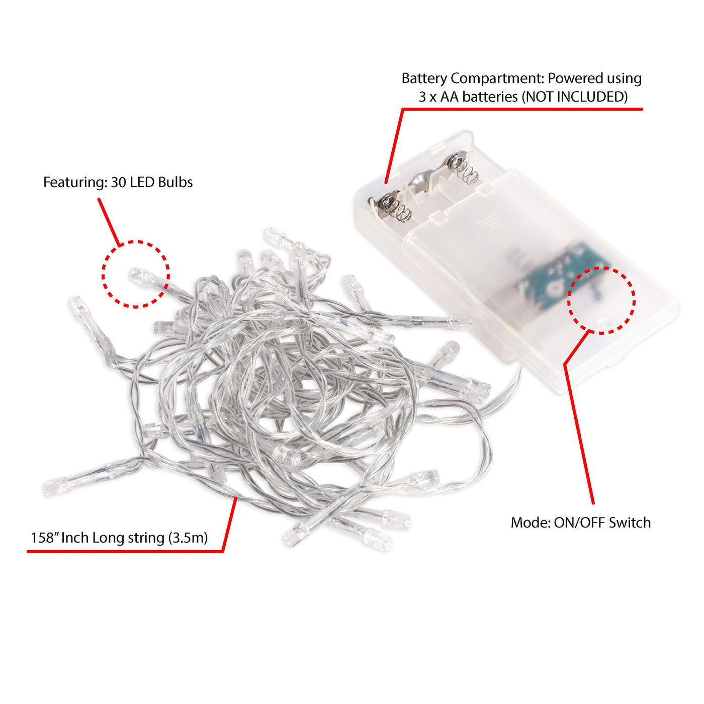 30 Mini Bulb Led Battery Operated Fairy String Lights In White, For Christmas, Wedding, Decoration, Crafts (158" Inch Long String)