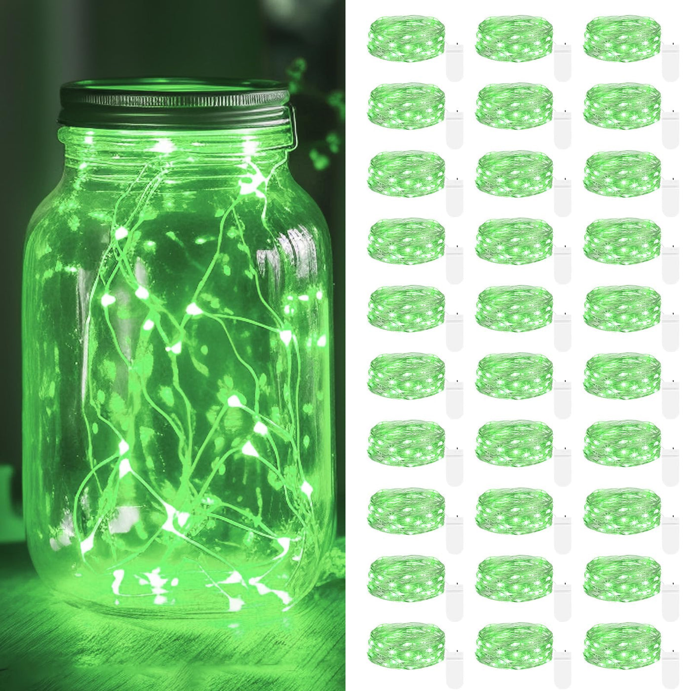 [ 30 Packs ] Fairy Lights Battery Operated String Lights 7 Ft/20 Led Minni Twinkle Battery Lights Small Fairy Lights For Mason Jars Diy Wedding Party Christmas Bedroom Decor, Green