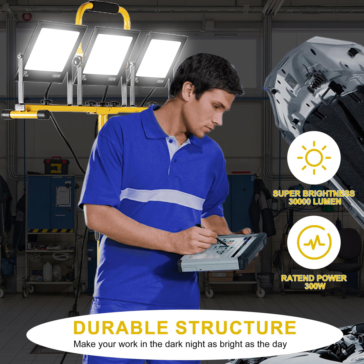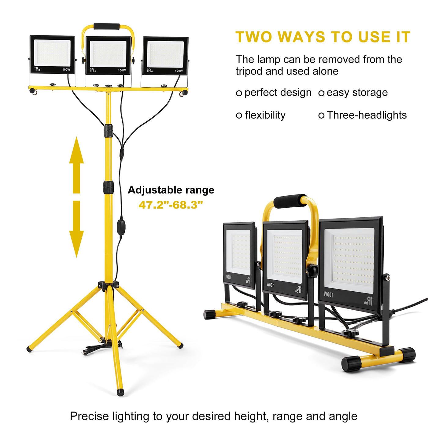 30000 Lumen Work Lights With Stand, 3 Adjustable Head Led Work Light, With Adjustable And Foldable Tripod Stand, Waterproof Lamp With 6500 Kelvin Color Temperature