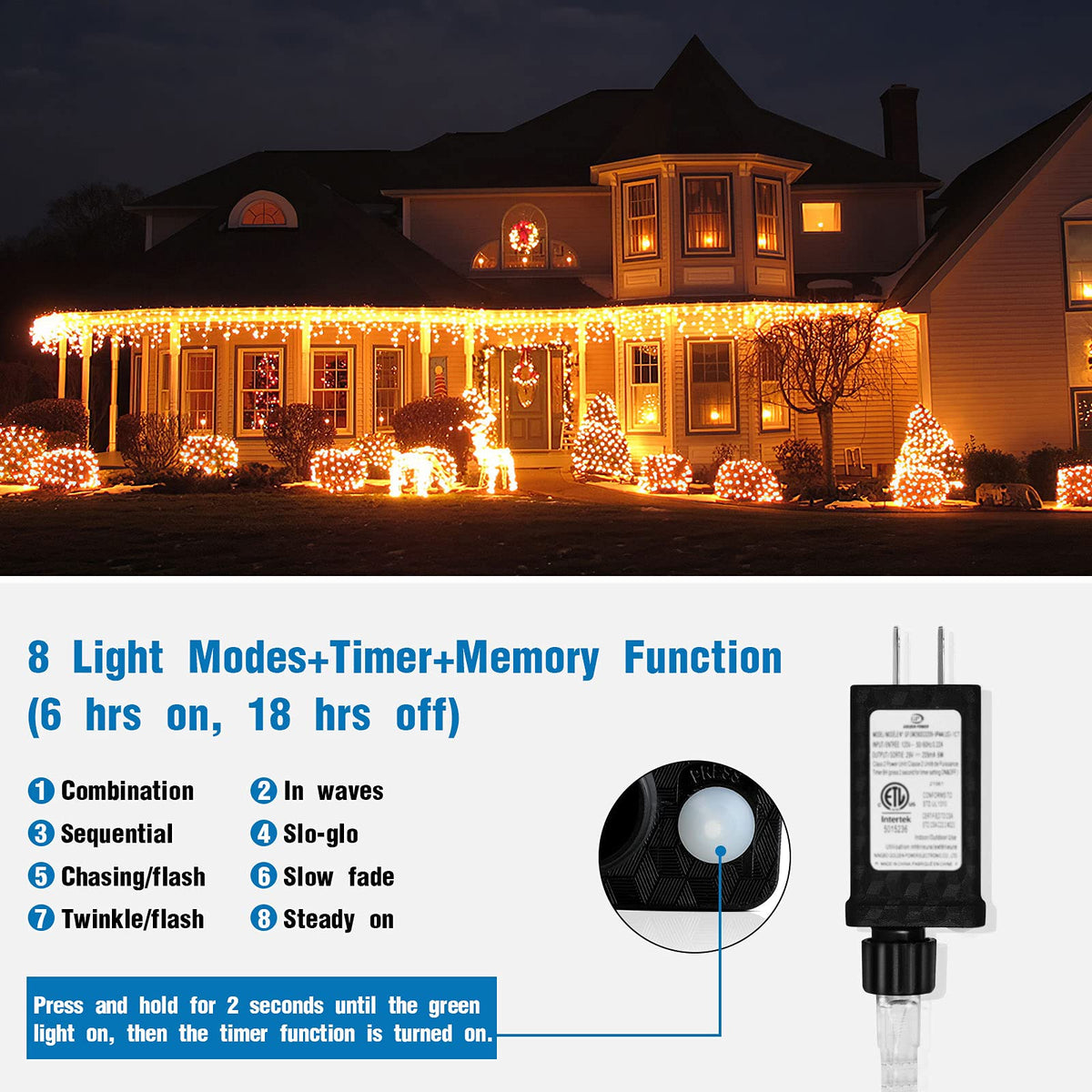 Q: Does the icicle string lights come with a timer function?A: Yes, the icicle string lights come equipped with a timer function that allows you to set the lights to operate for 6 hours on and 18 hours off daily, providing convenience and energy savings.