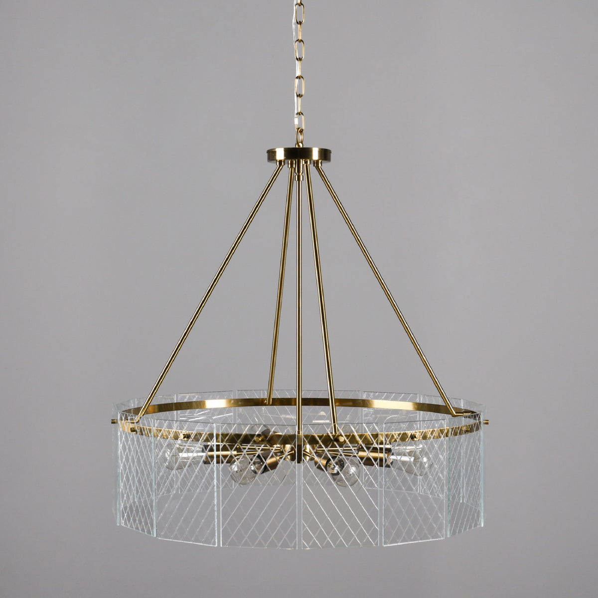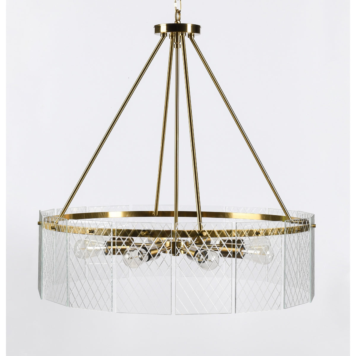 Warm and inviting, this contemporary style chandelier complements a wide variety of decor styles. With a classical round silhouette, this eight light chandelier is crafted from an iron frame in gold finish, not to mention the clear glass panel encasing with a gorgeous diamond lattice design. A perfect addition to your living room, foyer, bedroom, this chandelier is sure to be an icebreaker at your next party.