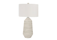 33'' Ivory Ceramic Geometric Table Lamp With Cream Drum Shade