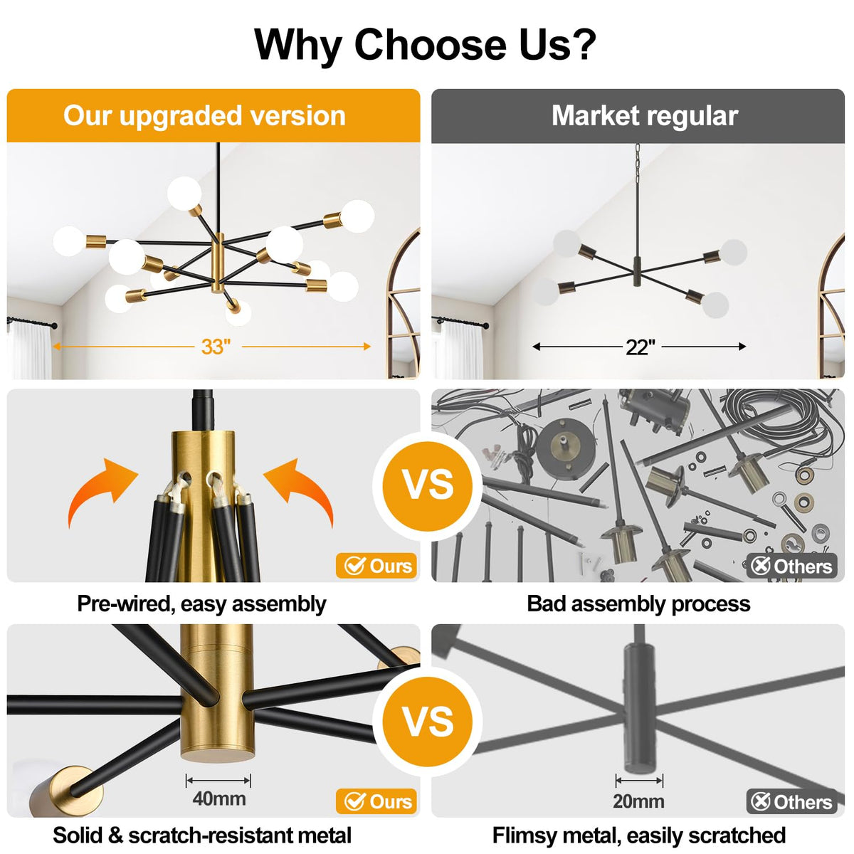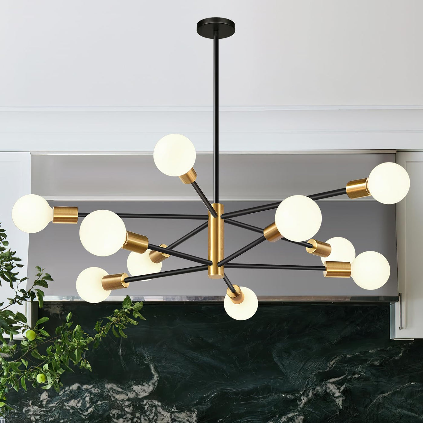 33'' Modern Chandelier Ceiling Light Fixture, 10-Light Sputnik Chandeliers Gold And Black Dining Room Light Fixture, Height Adju