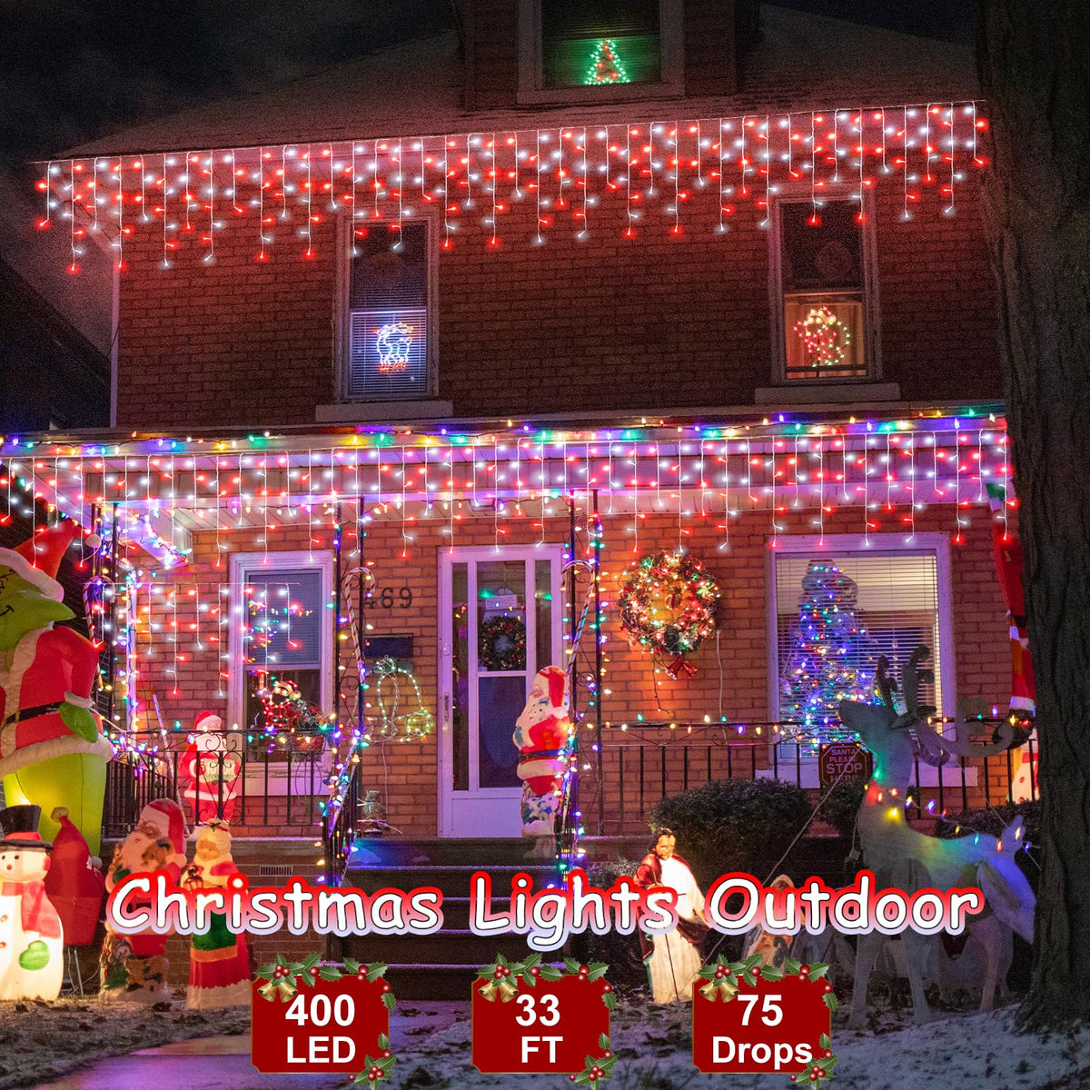 33Ft Red And White Christmas Lights, 400 Led Icicle Lights For Outside, Clear Wire Connectable Twinkle Lights With 8 Modes Timer
