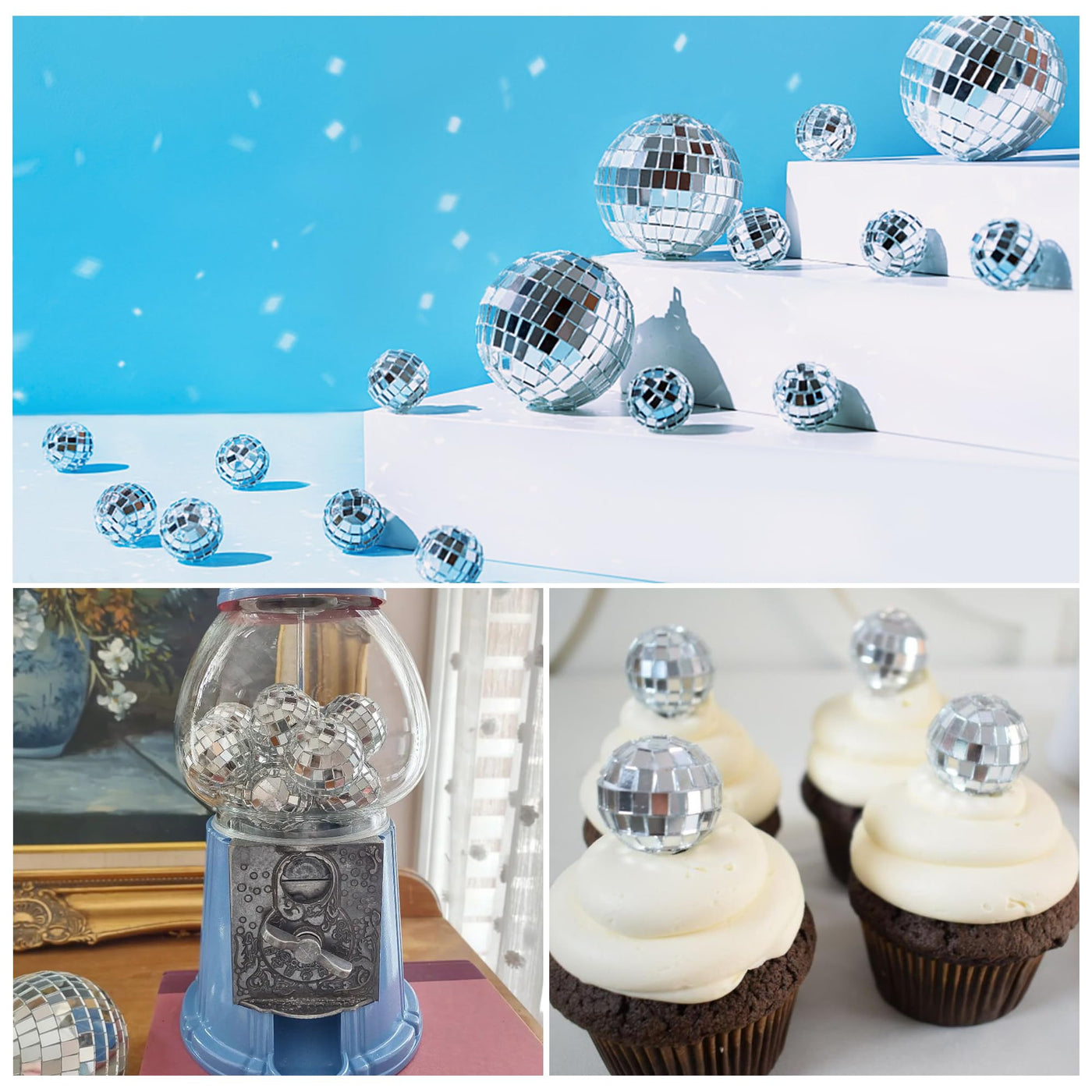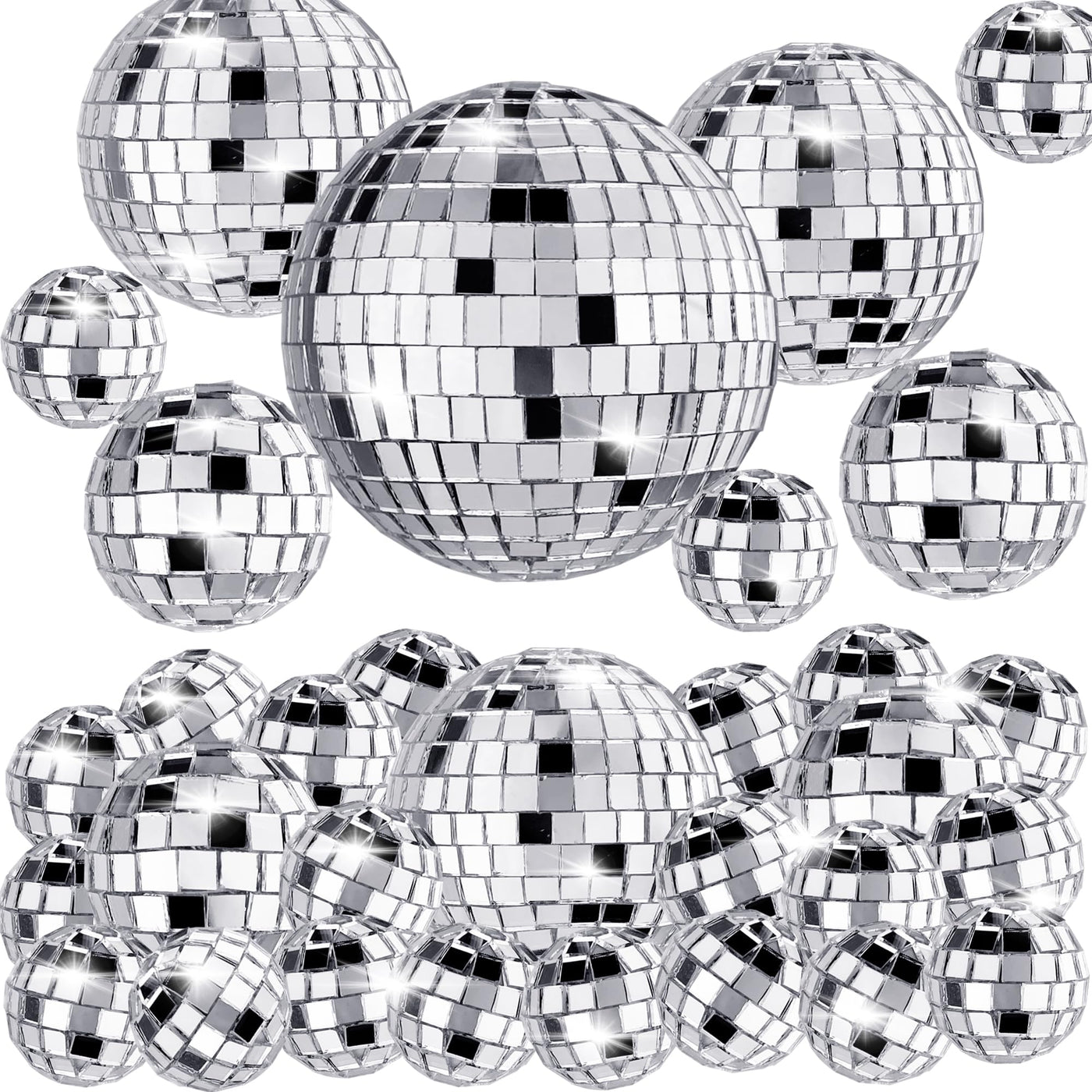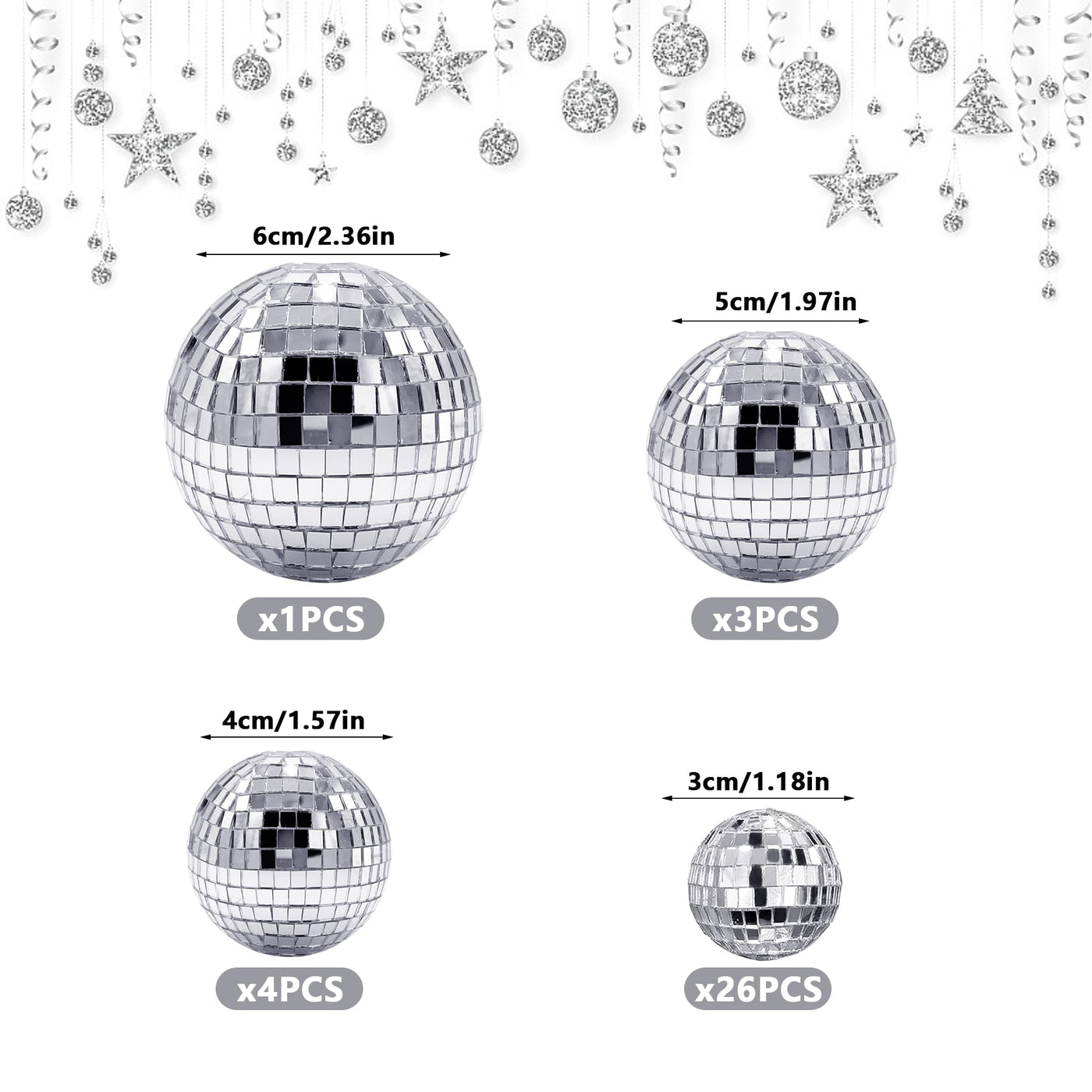 34 PCS Disco Ball Cake Decoration Ornaments Reflective Mirror Ball Cake Decoration 70s Disco Themed Party Decoration for Christm