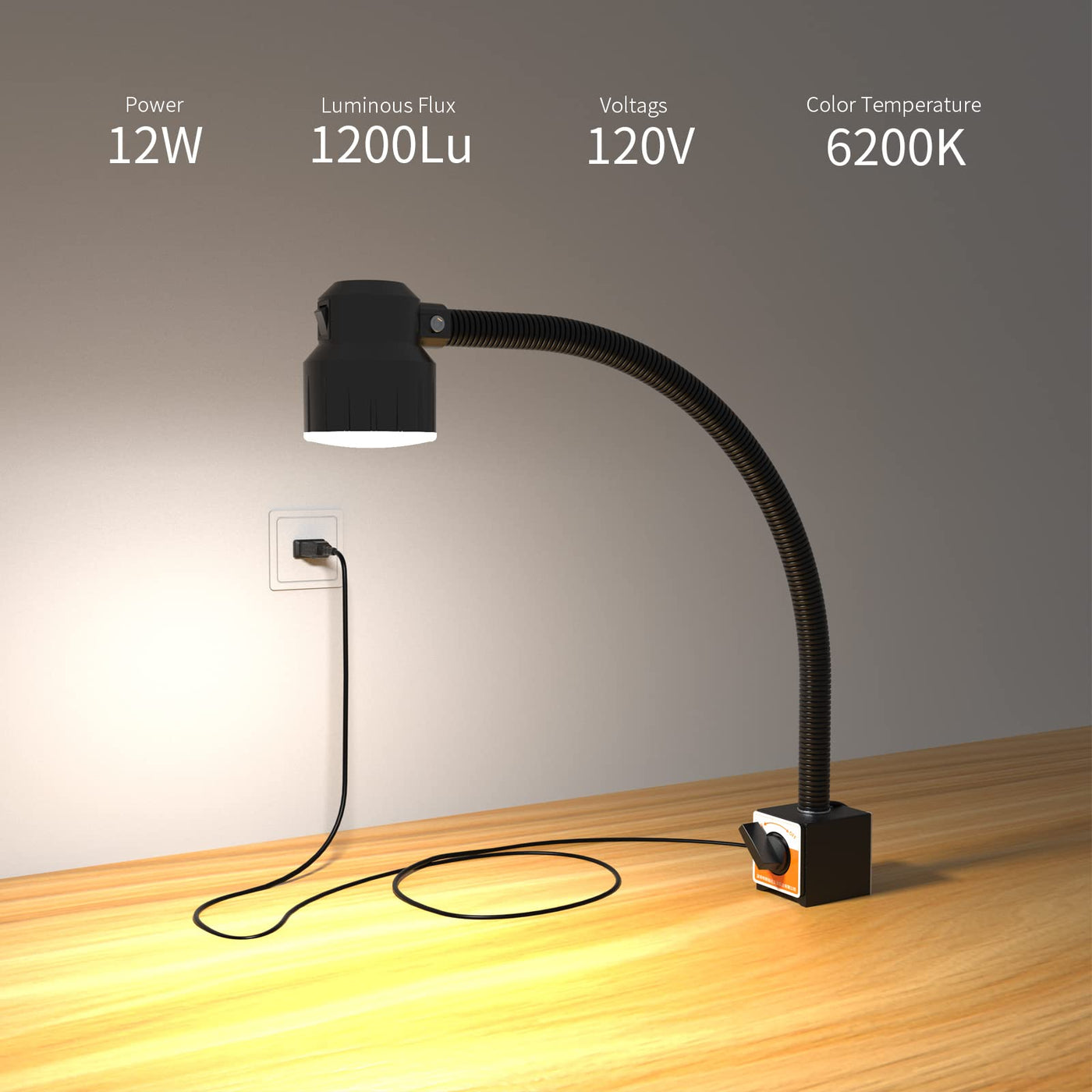 35Leds Magnetic Light, 1200 Lumen 120V Flexible Gooseneck Work Light With Adjustable Magnetic Base For Lathe Cnc Milling Drill Press Sewing Machine Industrial Lighting, 12W