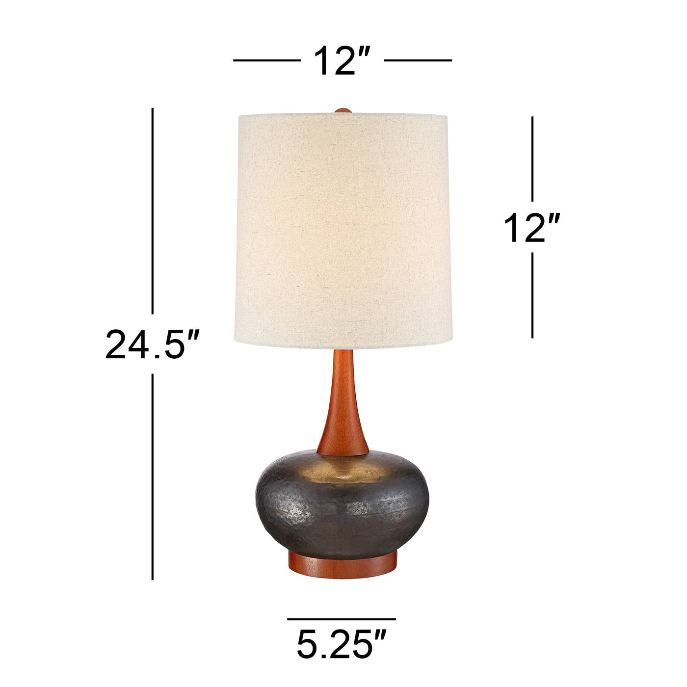 360 Lighting Andi Mid Century Modern Table Lamp 24.5 High Hammered Bronze Ceramic Wood Off White Tall Drum Shade For Living Room