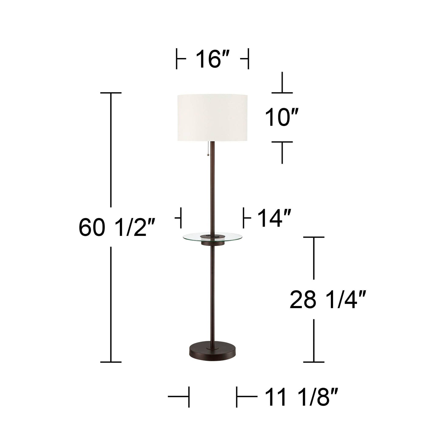 In A Handsome Bronze Finish, This Contemporary-Modern Floor Lamp Is A Classy Addition To Any Room. It Comes With A Round Glass Tray Table, Which Has One Power Outlet And One Usb Port Built-In So You Can Easily Recharge Your Smartphones And Other Devices. An Off-White Drum Shade On Top Provides The Perfect Finishing Touch To This Simple Yet Elegant Design.
