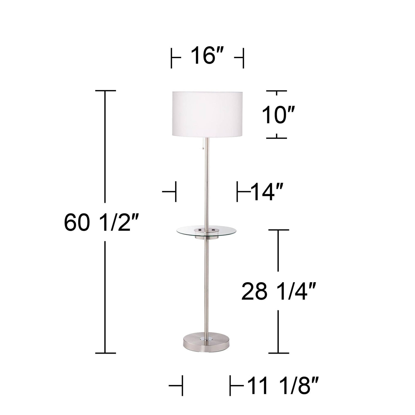 360 Lighting Caper Modern Floor Lamp With Tray Usb And Ac Power Outlet On Table Glass 60.5'' Tall Satin Nickel White Fabric Drum