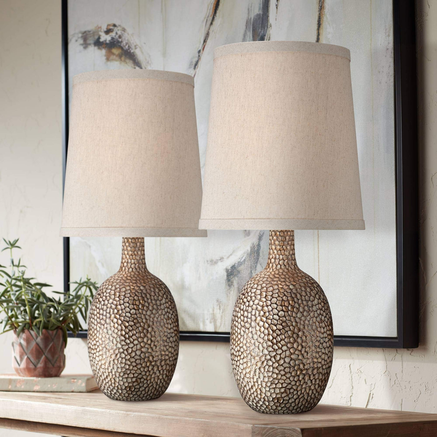 360 Lighting Chalane Rustic Farmhouse Accent Table Lamps 23 1/2 Tall Set Of 2 Antique Bronze Hammered Textured Natural Linen Shade For Bedroom Living Room House Bedside Nightstand Office -Like New