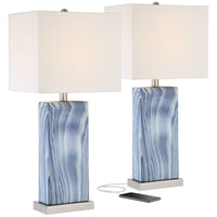 360 Lighting Connie Modern Table Lamps 25'' Tall Set Of 2 With Usb Charging Ports Dimmers Blue Faux Marble White Rectangular Sha