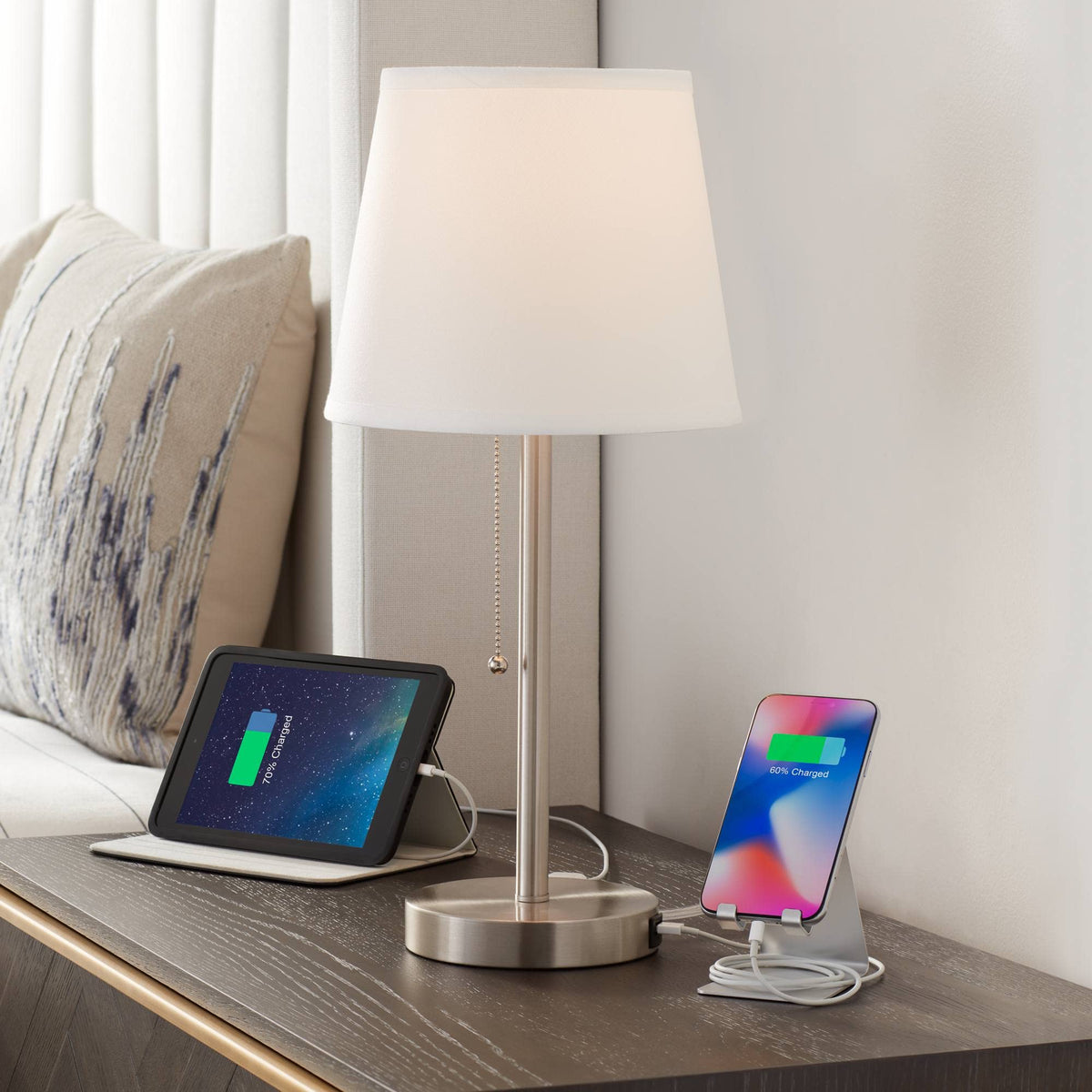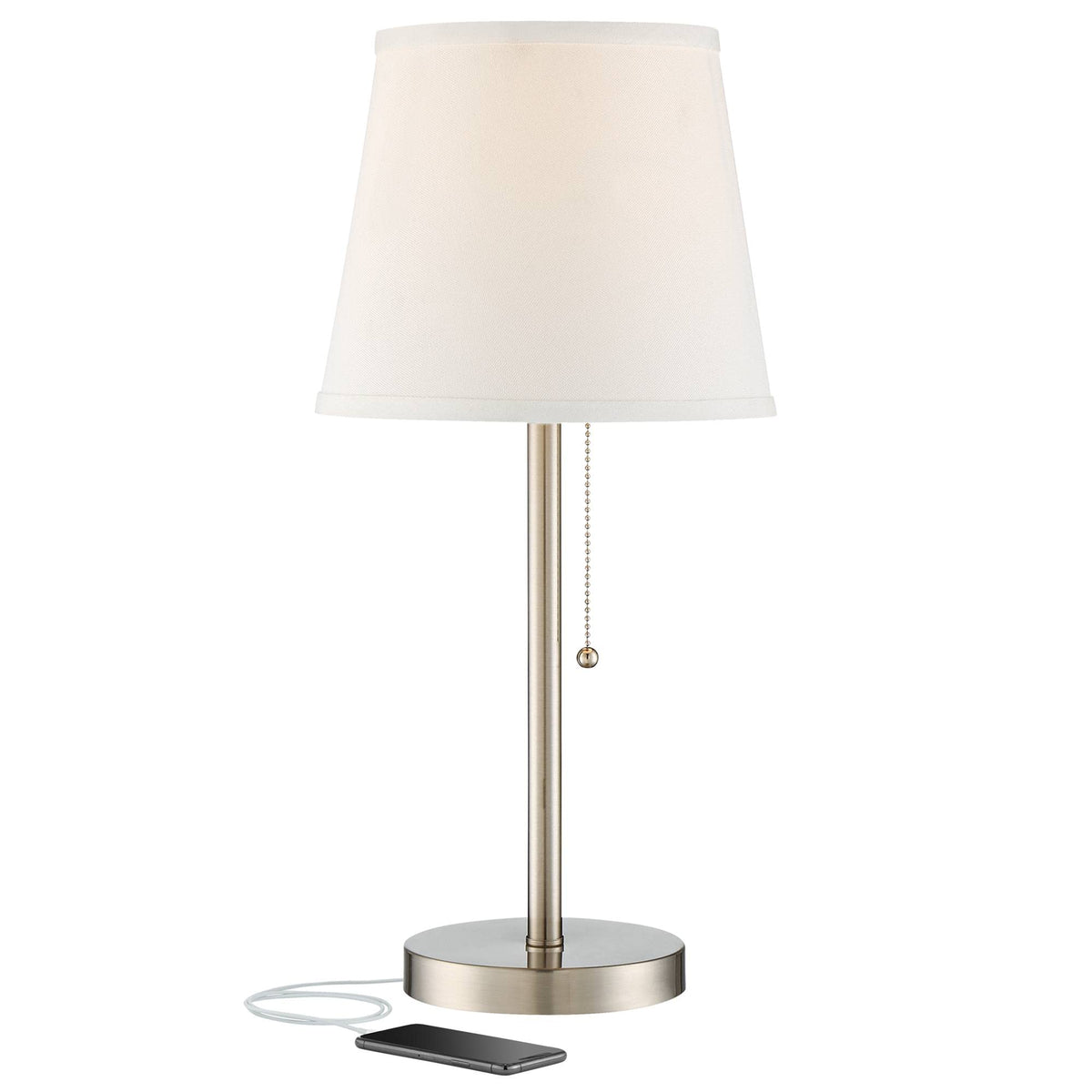 Charge Your Phone With This Stylish And Functional Accent Table Lamp With A Usb Port And Utility Outlet In The Base. The Round Base And Body Feature A Brushed Nickel Finish. A Pull Switch Adds Another Convenient Element Making It The Perfect Addition For A Desk Or Bedside Table. Another Smart Lighting Design From The 360 Lighting Brand.