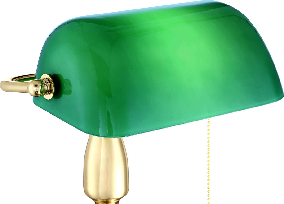- **Retro Design**: Echoing the iconic banker lamp style, this table lamp features a polished brass finish and a distinctive green glass shade that enhances its old-school character.