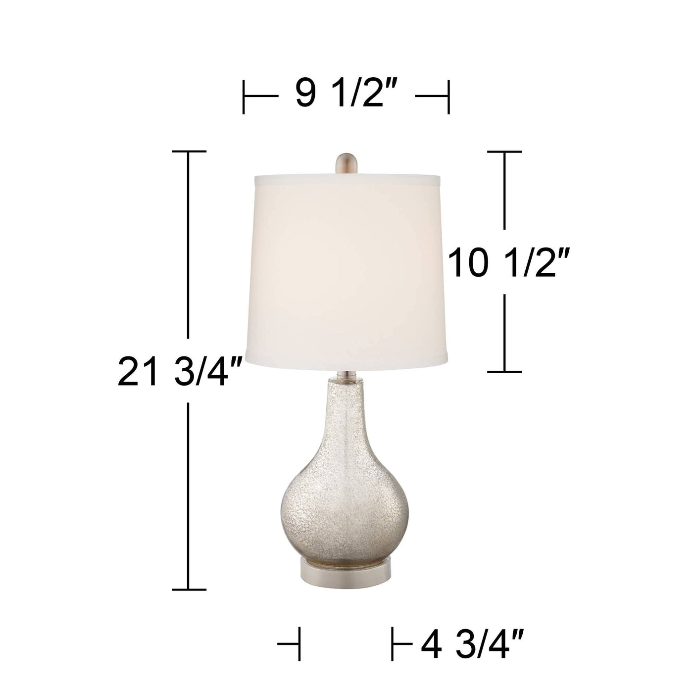 With A Beautiful Design And Modern Features, These Accent Table Lamps Are A Wonderful Addition To A Living Room Or Bedroom. In A Convenient Set Of Two, They Come In Curving Mercury Glass Bodies That Offer A Shimmering Effect. Brushed Nickel Finish Accents And Off-White Drum Shades Add A Classic Effect To This Contemporary Design. Each Lamp Has A Usb Port Built Into The Base, Designed To Charge Smartphones And Other Handheld Devices. This Lamp Set Comes With Two Tabletop Dimmers, One For Each Lamp, Which Allows You To Control The Level Of Lighting. Simply Insert The Lamp Plug Into The Dimmer Outlet, And Then Slide The Switch On The Control To Dim Or Brighten The Lighting. Dimmers Are Compatible With Halogen And Incandescent Bulbs, And Most Dimmable Cfl And Led Bulb Designs.