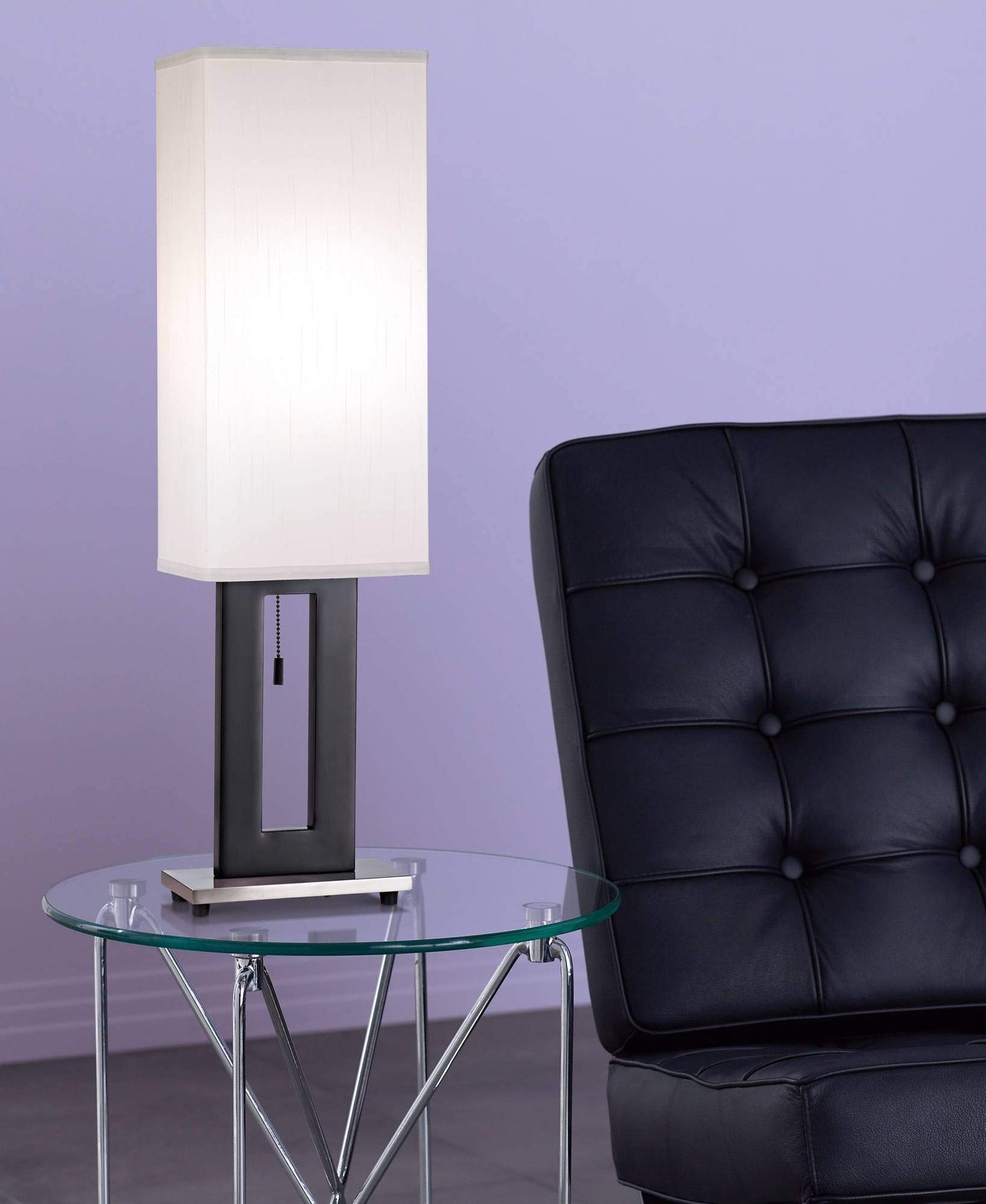 Q: Is the lamp easy to operate?A: Yes, the lamp features an on-off pull chain control, making it easy to operate and perfect for bedside or living room use.
