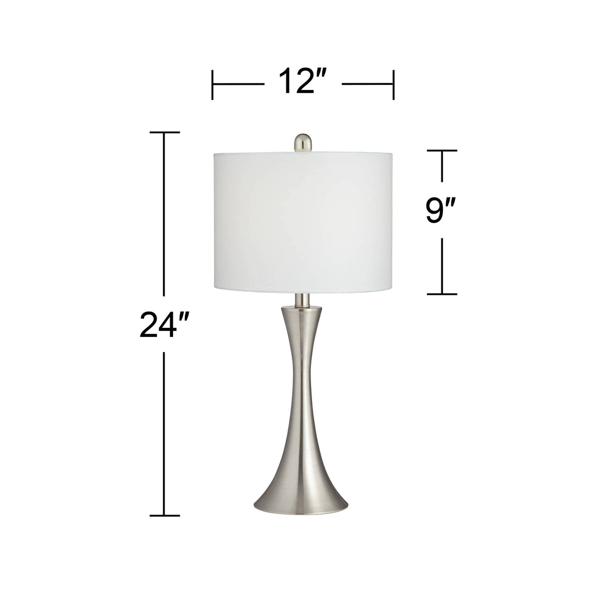 360 Lighting Modern Table Lamps Set Of 2, 24" Tall, Dimmers, Brushed Nickel, White Shade