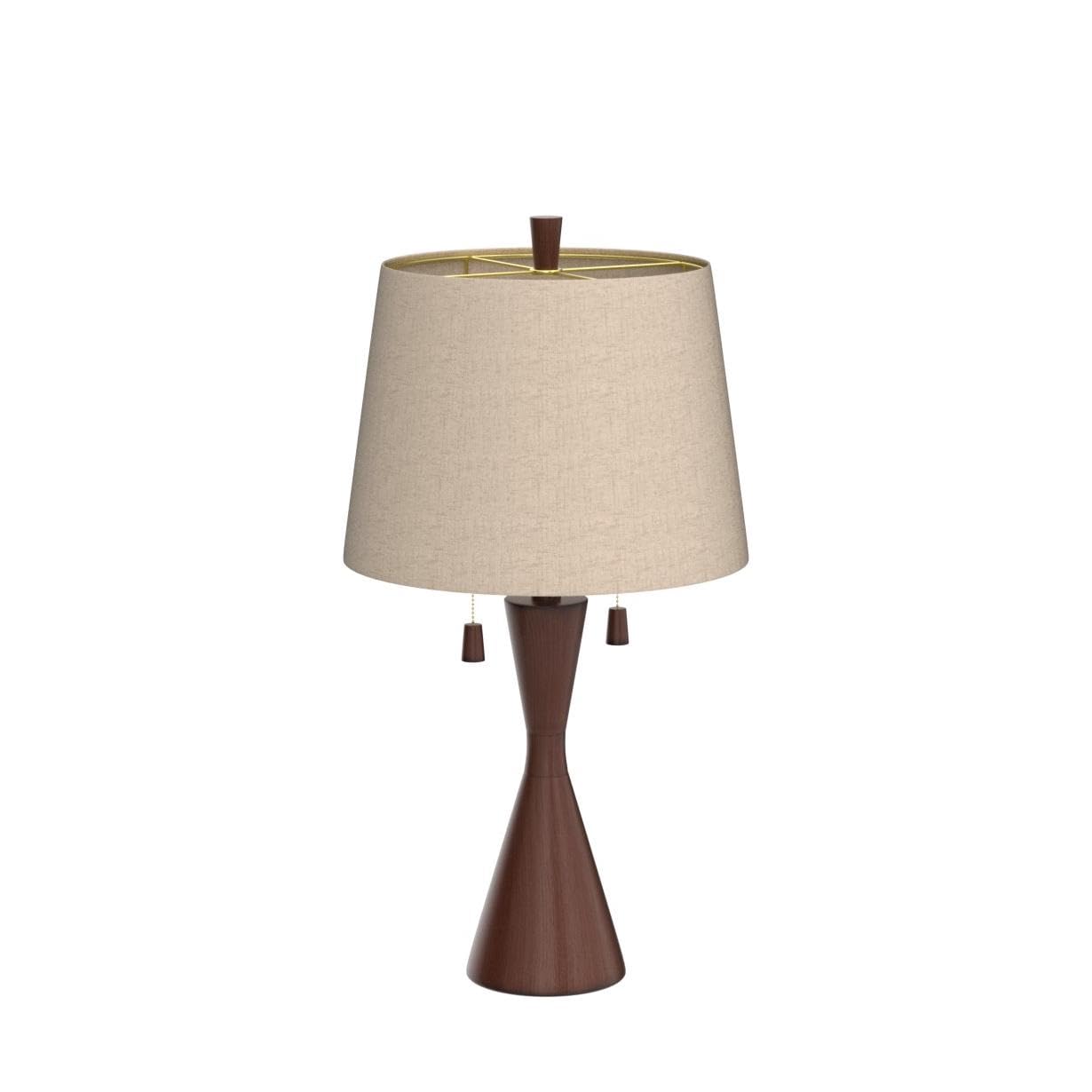 The Same Finish In The Body Of This Contemporary Design Extends To The Finial And Pull Chain Switches For A Streamlined Look. An Oatmeal Drum Shade Complements The Warm Tones. Two Modern Table Lamps Ideal For Any Room In Your Home.