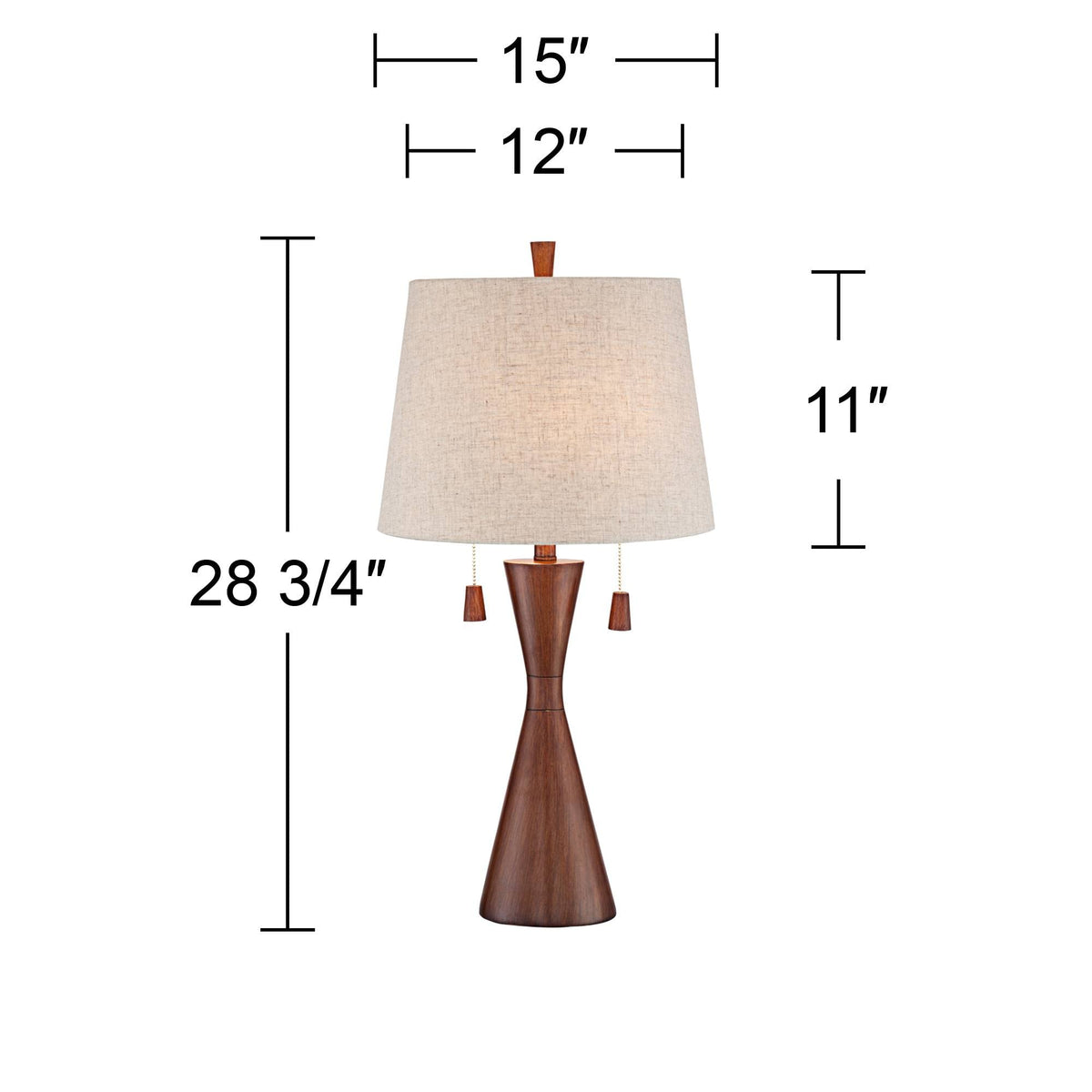 360 Lighting Omar Modern Table Lamp 28 3/4'' Tall Warm Brown Wood Hourglass Oatmeal Fabric Tapered Drum Shade For Bedroom Living