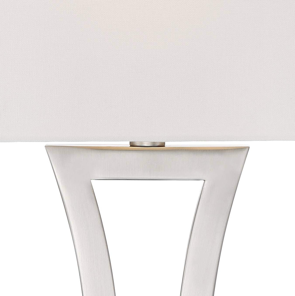 Create A Cohesive Look In Your Bedroom Or Living Room With This Modern Table Lamp Set. From The Popular 360 Lighting Brand, Each Lamp Comes In A Sleek Brushed Nickel Finish For A Contemporary Shine. The Metal Frame Offers An Eye-Catching Geometric Look, With A Curved, Opened-Up Column Sitting Atop A Flat Rectangular Base. An Off-White Rectangular Lamp Shade Delivers An Angular Flair, With A Charmingly Rounded Finial On Top. This Lamp Set Comes With Two Tabletop Dimmers, One For Each Lamp, Which Allows You To Control The Level Of Lighting. Simply Insert The Lamp Plug Into The Dimmer Outlet, And Then Slide The Switch On The Control To Dim Or Brighten The Lighting.