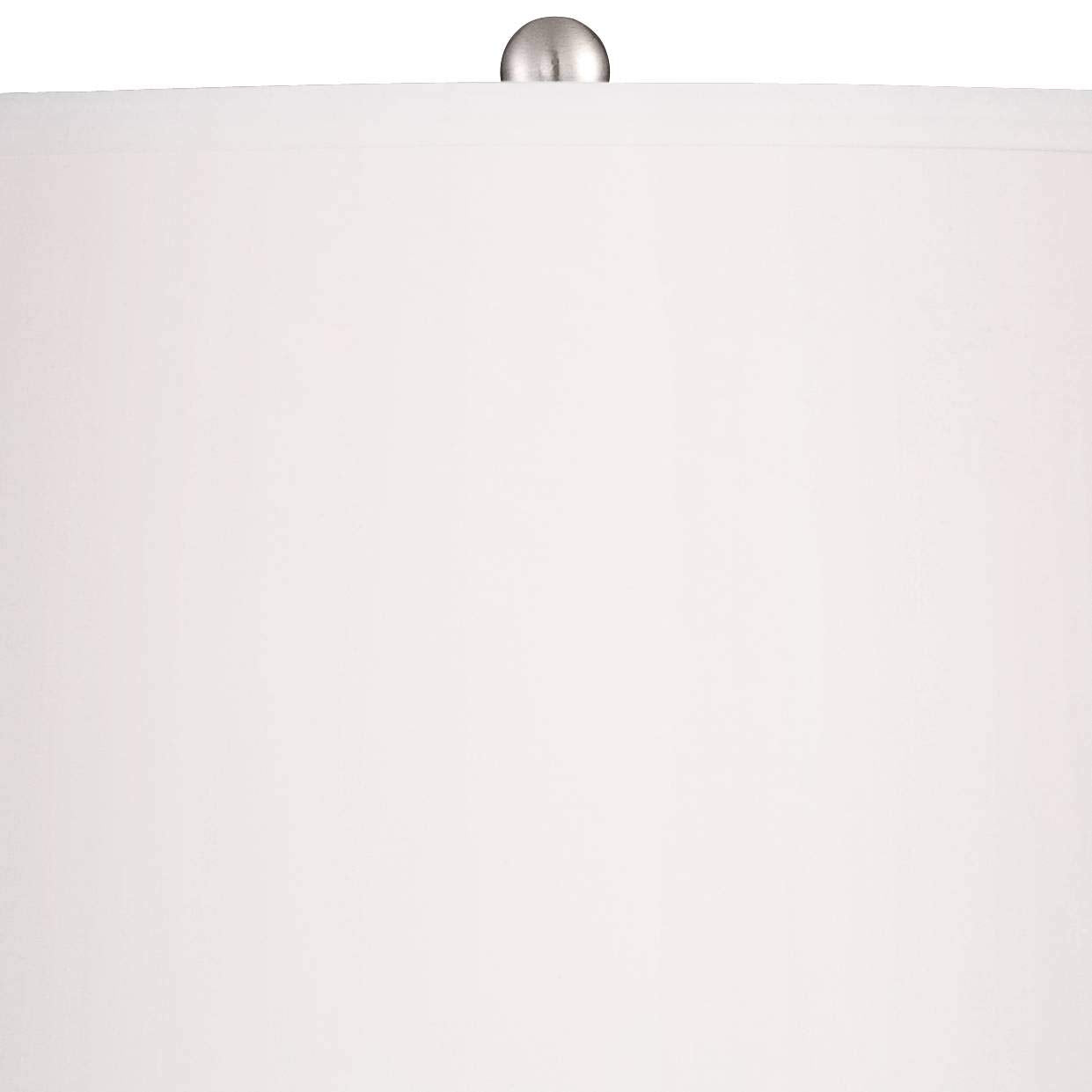 Q: What are the dimensions of the lamp shade?A: The lamp shade measures 15 inches across the top, 17 inches across the bottom, and 10 inches on the slant, creating a balanced look.