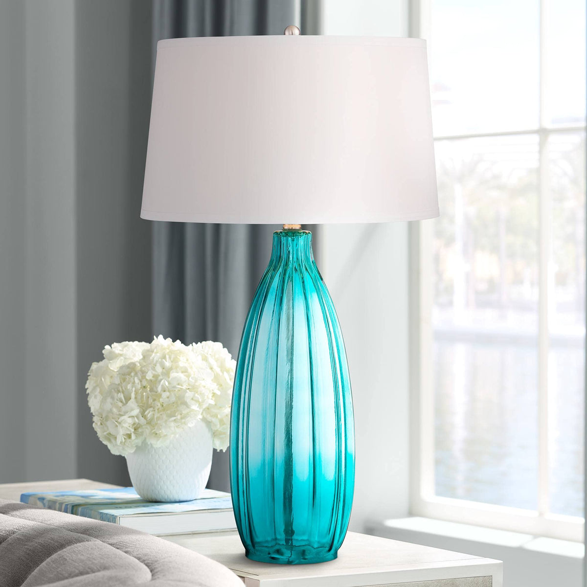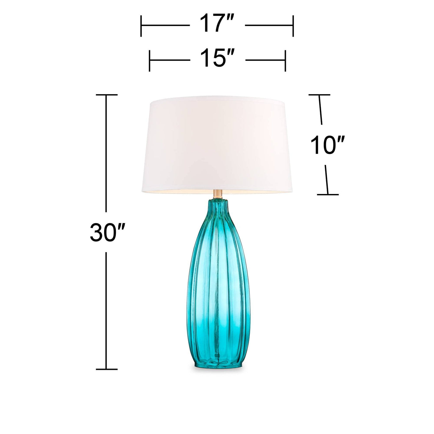 360 Lighting Stella Coastal Table Lamp 30" Tall Blue Ribbed Glass With White Shade