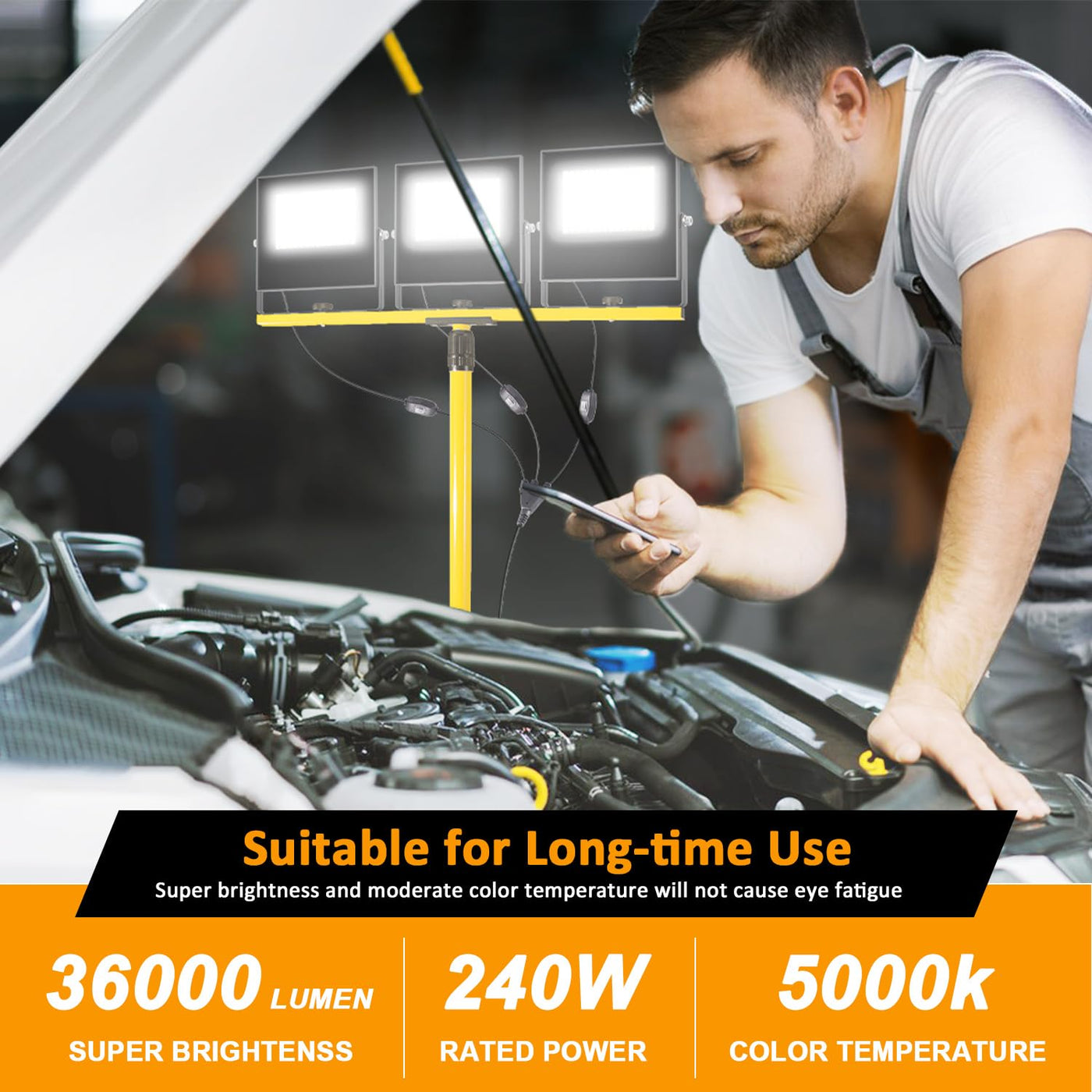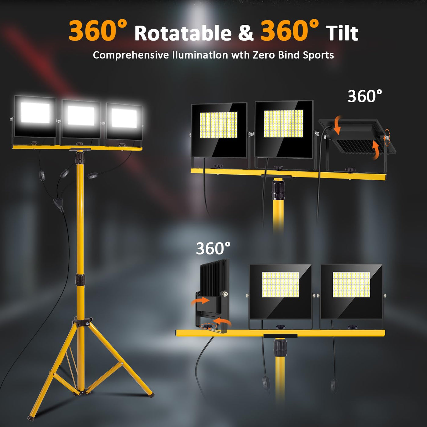 3 Adjustable Head Led Work Light 36000 Lumen &Amp; Waterproof &Amp; Foldable Our Led Work Light Is Designed With 36000Lumen 3 Work Light Bulbs, The High Brightness Can Meet Most Work Need. It Is Waterproof To Be Used Outdoors In Rainy Days, Easy To Assemble, Carry And Can Be Used In Your Yard, Home Basement, Garages, Construction Sites,And Many Other Places. Super Bright &Amp; Convenient Design Great Flexibility: Horizontal Rotation 360 &Amp; Vertical Tilt 360 Voltage:120V/60Hz Color Temperature:5000K No Tools Required