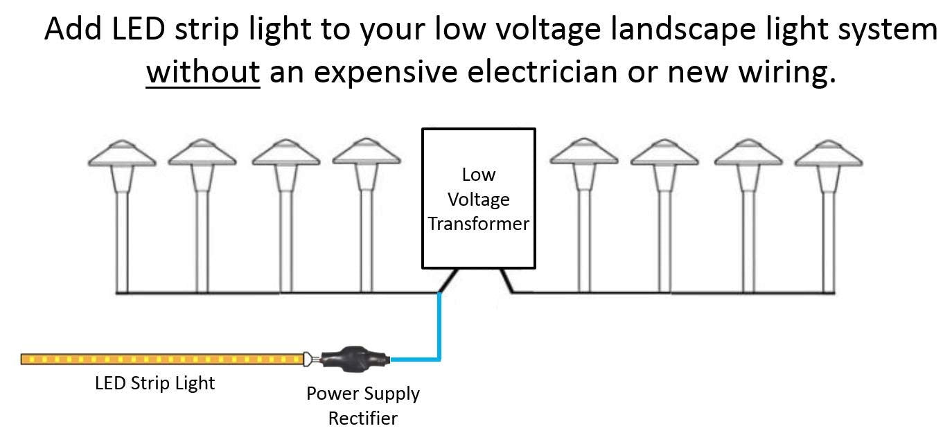 Q: Can I use this power supply outdoors?A: Yes, this power supply is waterproof, making it suitable for outdoor use in landscape lighting applications. It allows you to connect LED strip lights to your existing low voltage lighting system without needing to run standard 120V AC outlets.