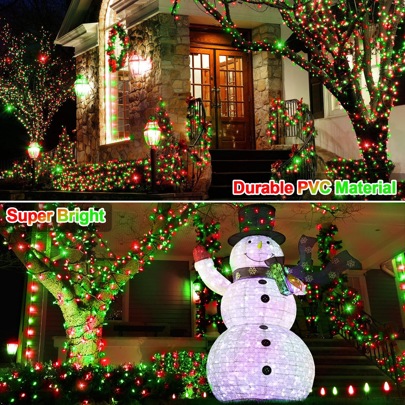 Q: What is the total length of the string lights, and how much lead wire is included?A: The total length of the 394FT LED Christmas Lights is 394 feet, with an additional lead wire of about 10 feet, providing ample length for decorating large areas such as yards, trees, and patios.