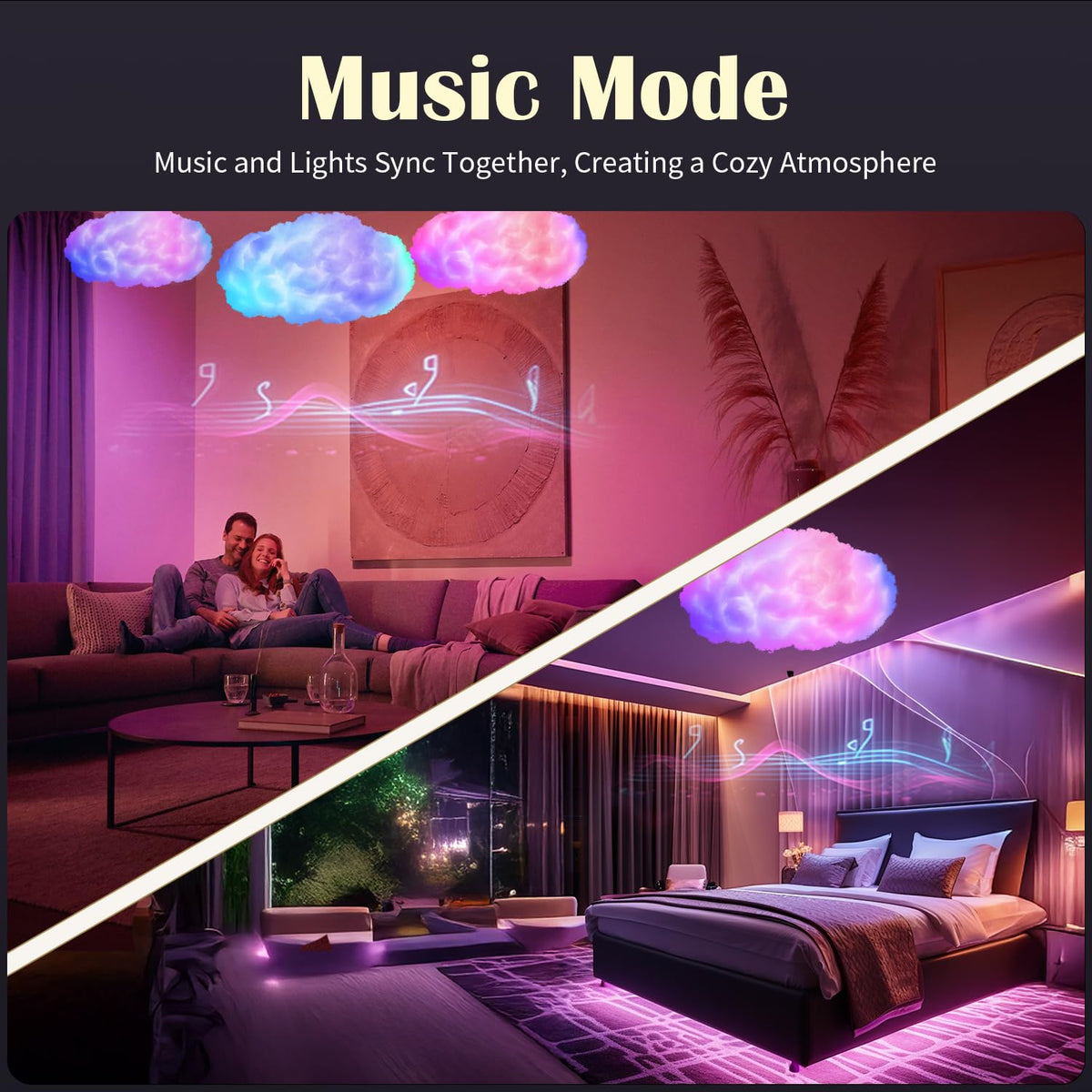3D Cloud RGB Night Light - APP & Remote Control, Music Sync, USB Powered Mood Lamp for Bedroom, Ceiling Decor, Gaming, Kids Room