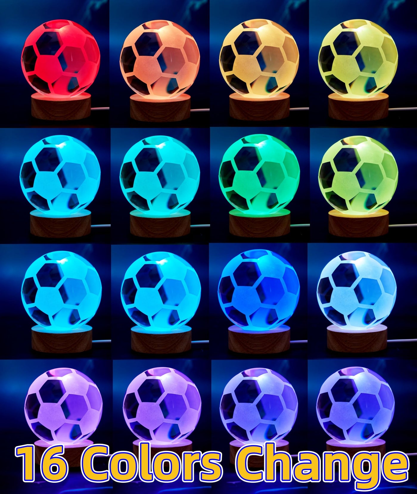 3D Crystal Ball Lamp, Lifelike Soccer Night Light, 16 Color Changing With Dimmable Remote Control, Football Lamp Gift