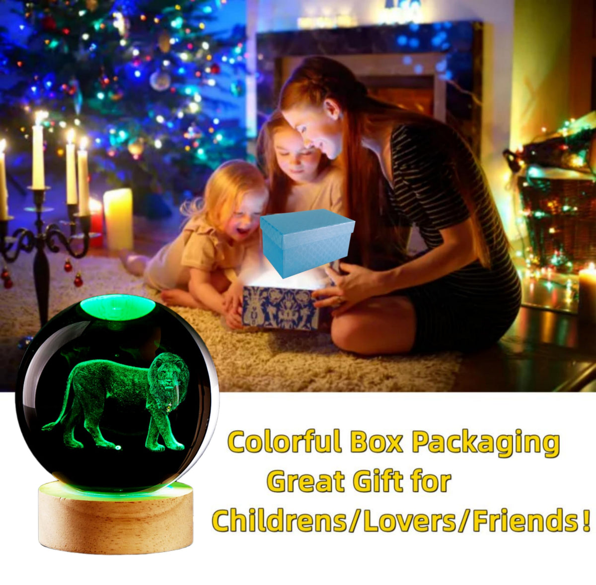 3D Crystal Ball Lamp With Lifelike Led Lion, 16 Color Changing Light, Dimmable Remote Control