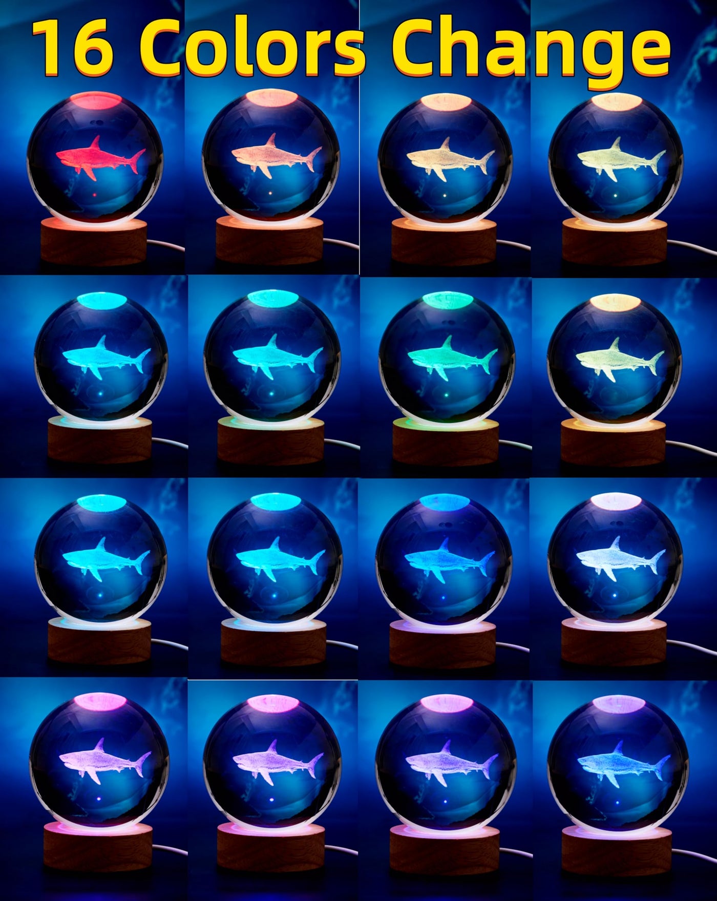 Q: What makes the 3D Shark Crystal Ball Lamp unique?A: The 3D Shark Crystal Ball Lamp features advanced 3D laser engraving technology that creates lifelike patterns within the high-quality K9 crystal. Its clear design and stunning visual effects make it a perfect decorative piece for any room.