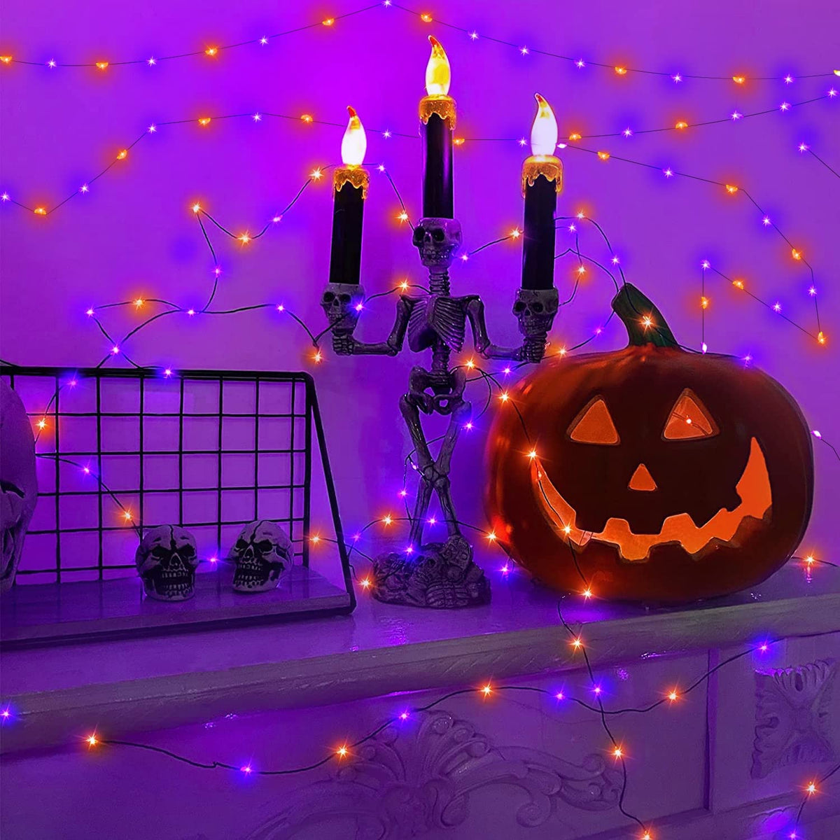 Q: What colors do the Halloween lights come in?A: The Halloween lights are available in three colors: orange, purple, and a combination of both orange and purple.